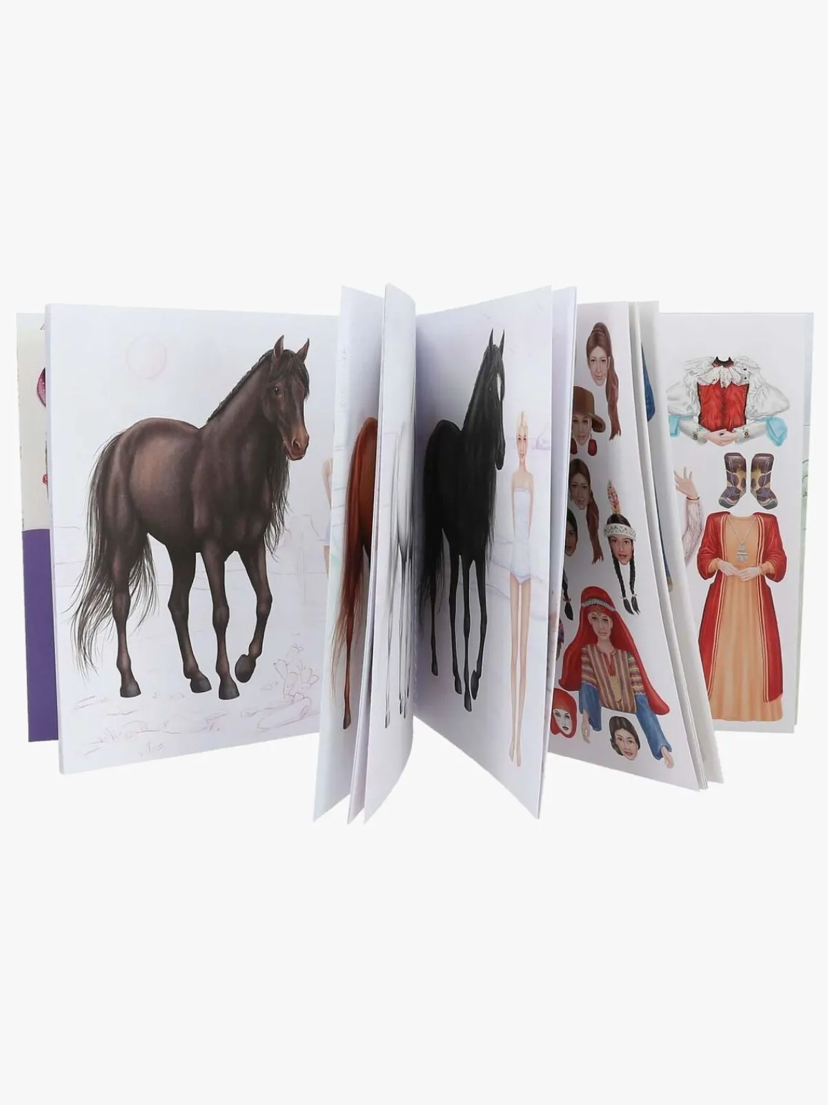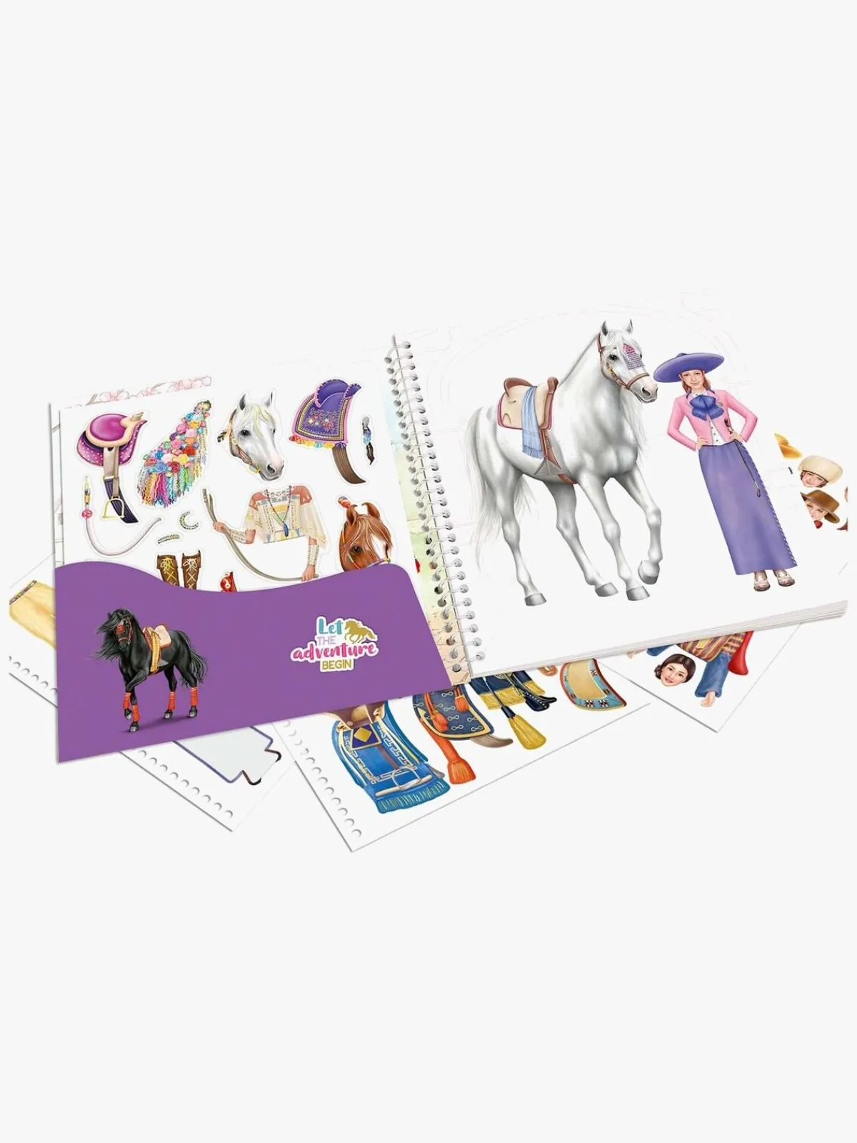 Underholdende klistermærkebog fra Miss Melody med 24 sider med hestemotiver. Den har 11 sider med klistermærker som du kan placere, hvor du vil, så du kan designe dine egne looks til både ryttere og heste.