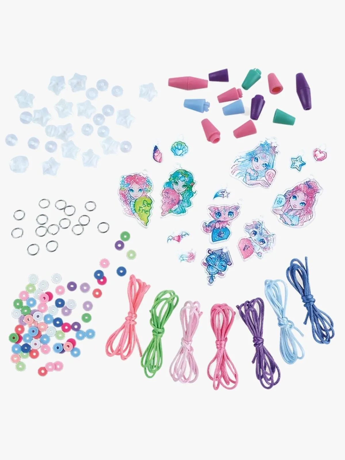 – Indeholder: 14 vedhæng, 98 perler, 15 sæt af o-ringe, 7 silkesnører, 7 sikkerhedsspænder, 1 instruktionsbog.