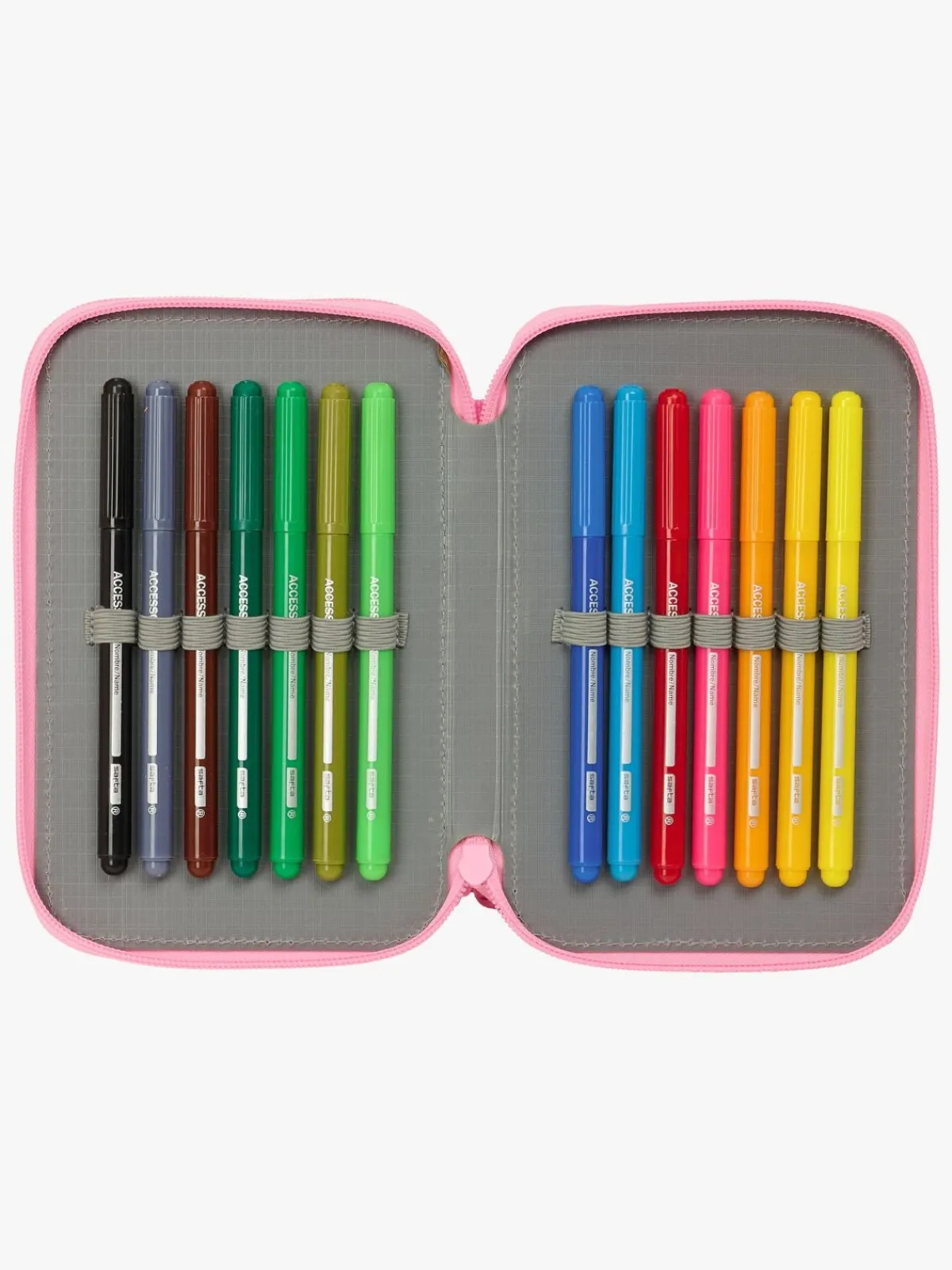– Indeholder: 1 penalhus, 10 farveblyanter, 14 tusser, 1 viskelæder, 1 blyantspidser, 2 kuglepenne, 1 blyant.