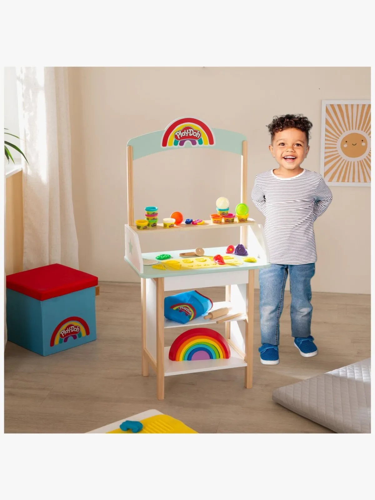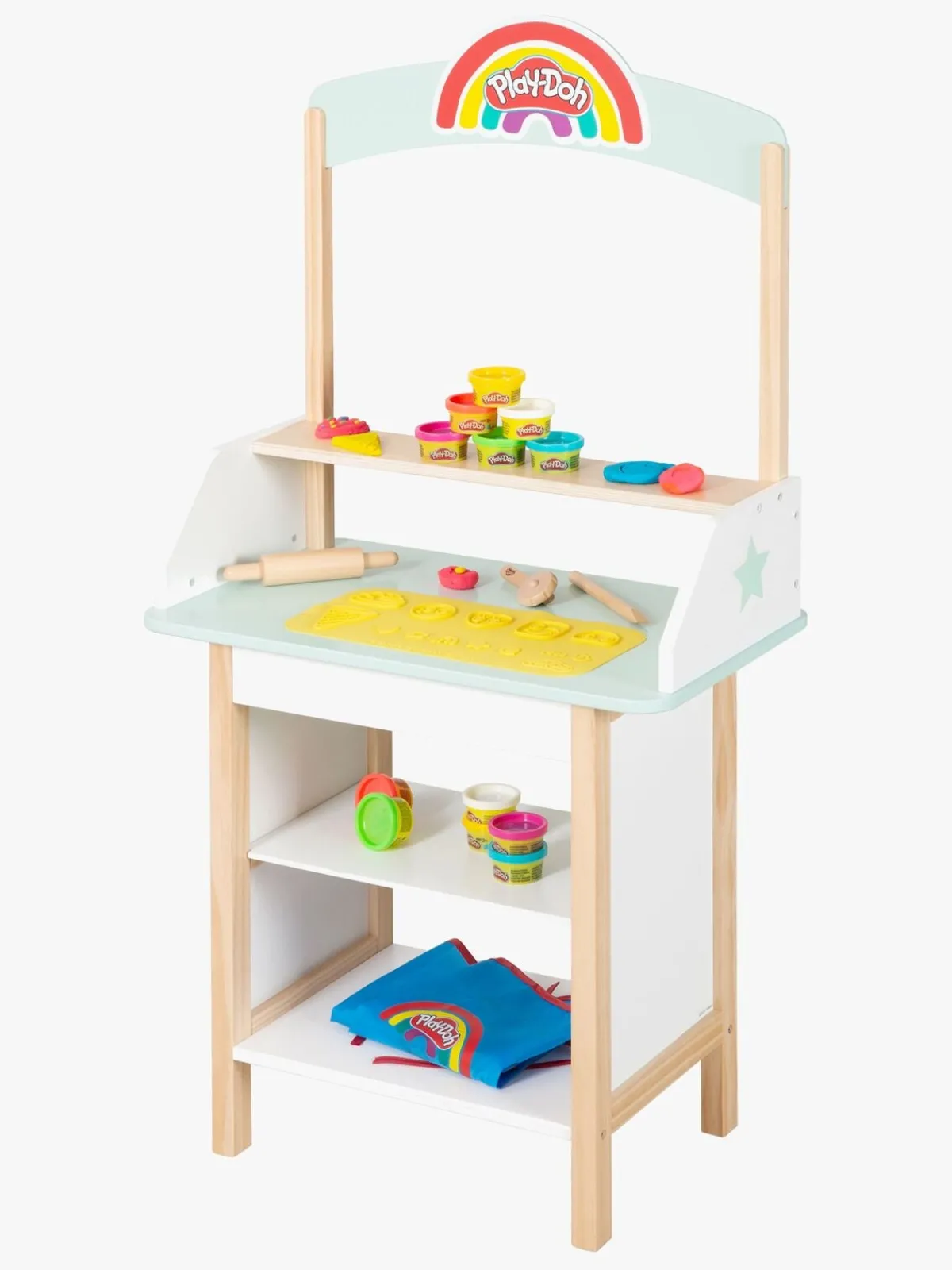 – Indeholder: 1 forklæde, 1 isbod, 1 kreamåtte, 1 modelleringsværktøj, 1 kagerulle, 1 pizzaskærer, 12 bøtter med Play-Doh.