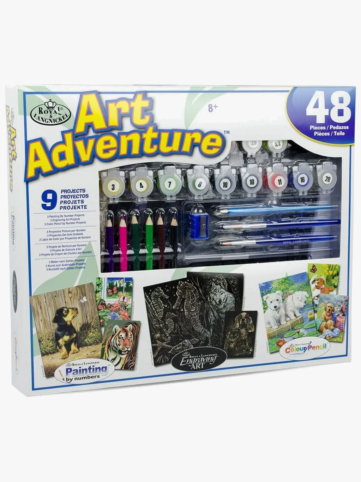 – Indeholder: 14 farvebøtter, 10 farveblyanter, 9 stenciler, 3 øvestykker.