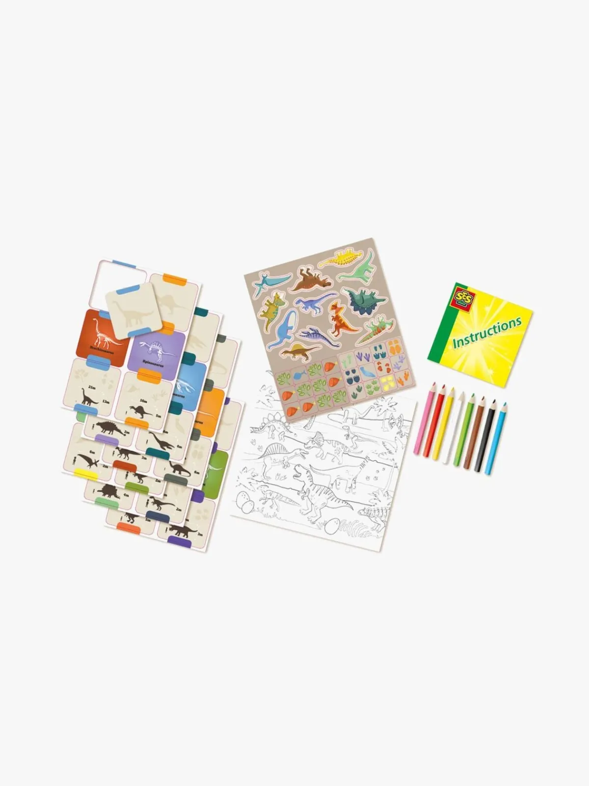 – Indeholder: 24 kort, 1 klistermærkeark, 1 stencil, 8 farveblyanter, 1 instruktionsbog.