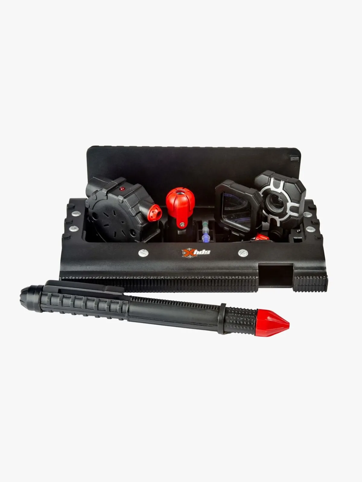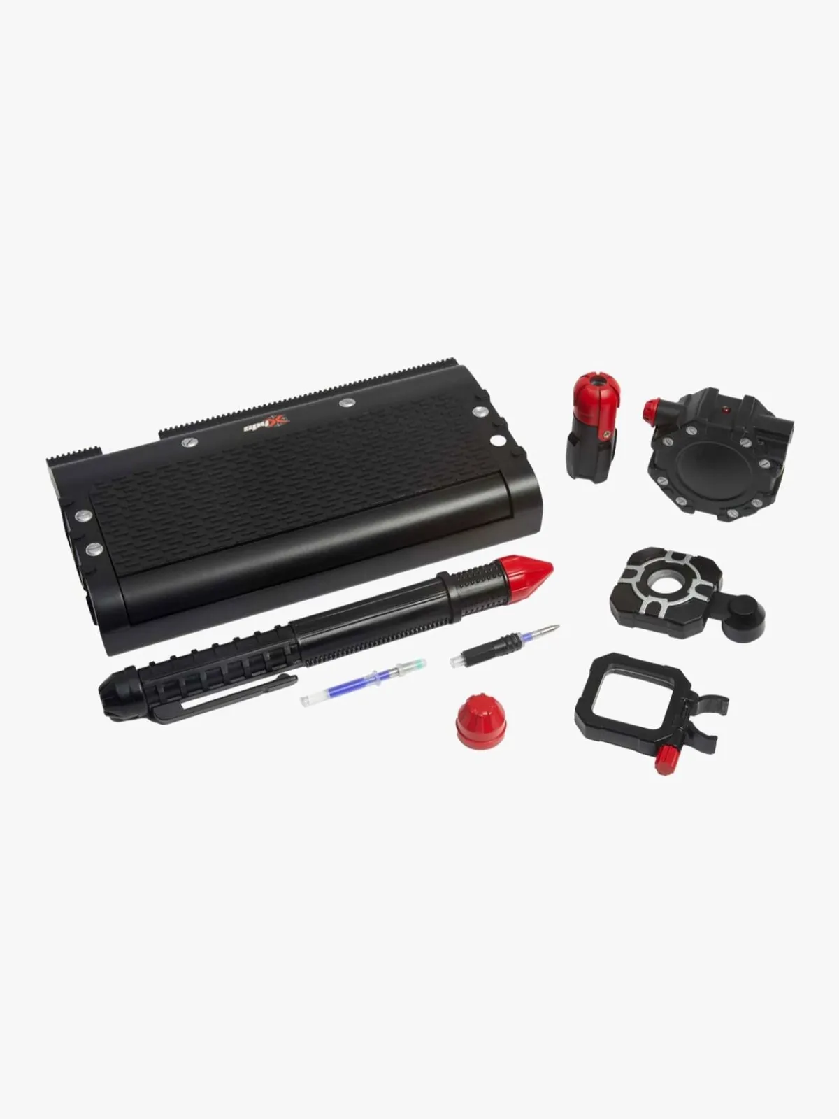 – Indeholder en pen med usynligt blæk, et justerbart sigte, en lommelygte, en bevægelsesalarm, et lysbøjningsrør og en transportabel opbevaringsboks.