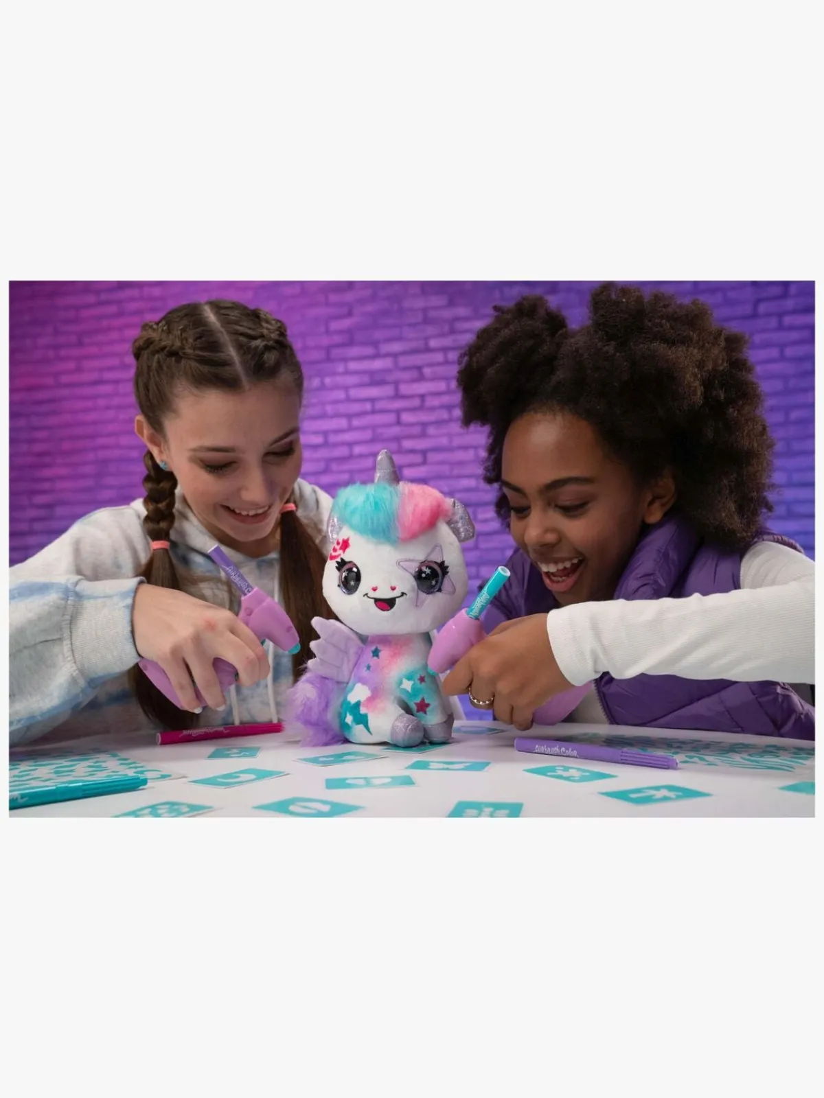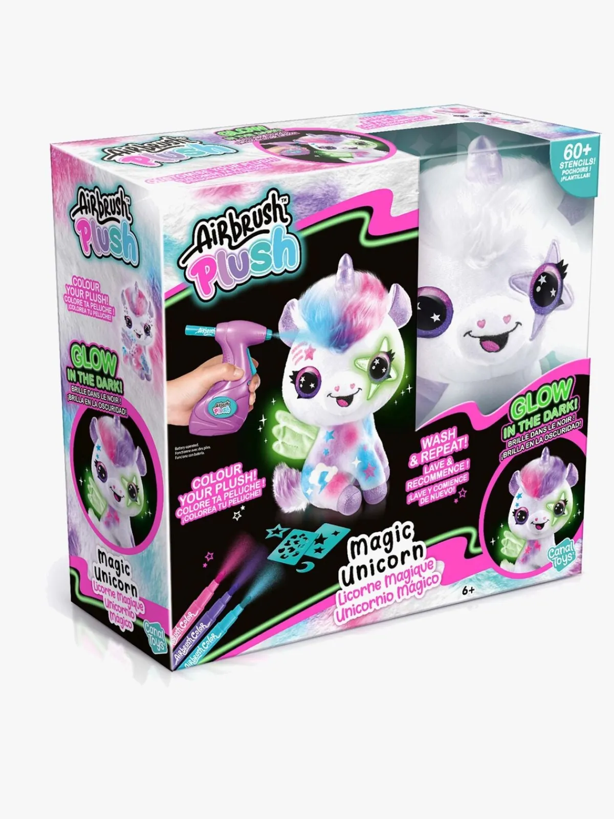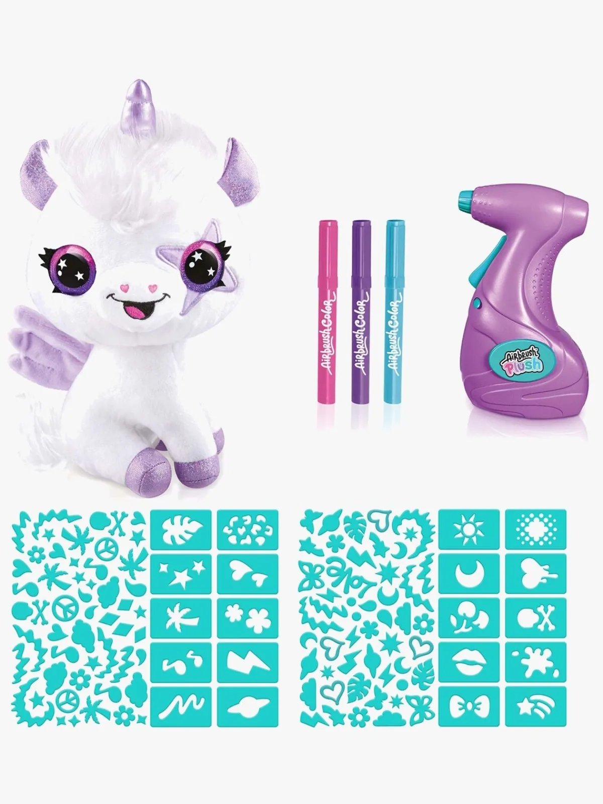 – Indeholder: 1 bamse, 1 airbrush-værktøj, 100 genanvendelige skabeloner, 4 farver.