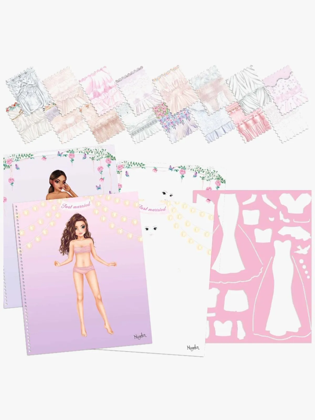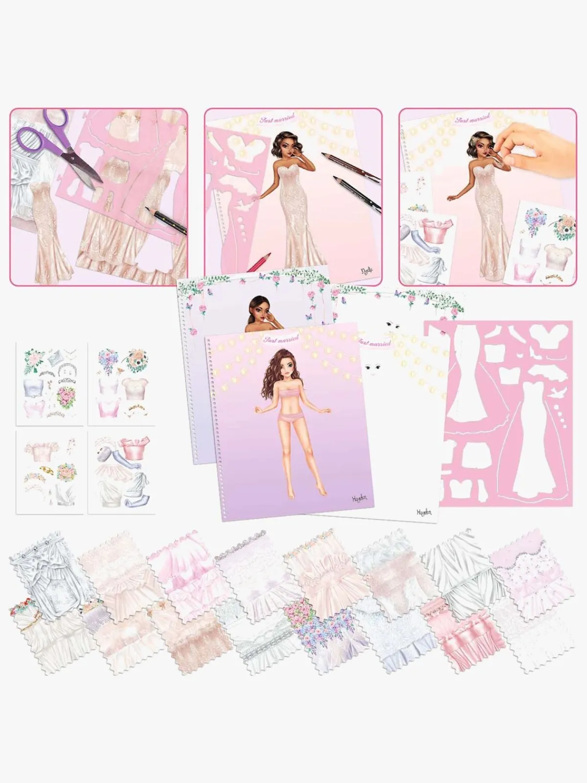 – Indeholder: 60 sider med TOPModel-skabeloner, 16 sider med stofmønstre, 1 stencil og 4 klistermærkeark.