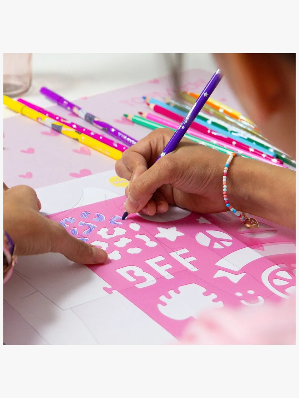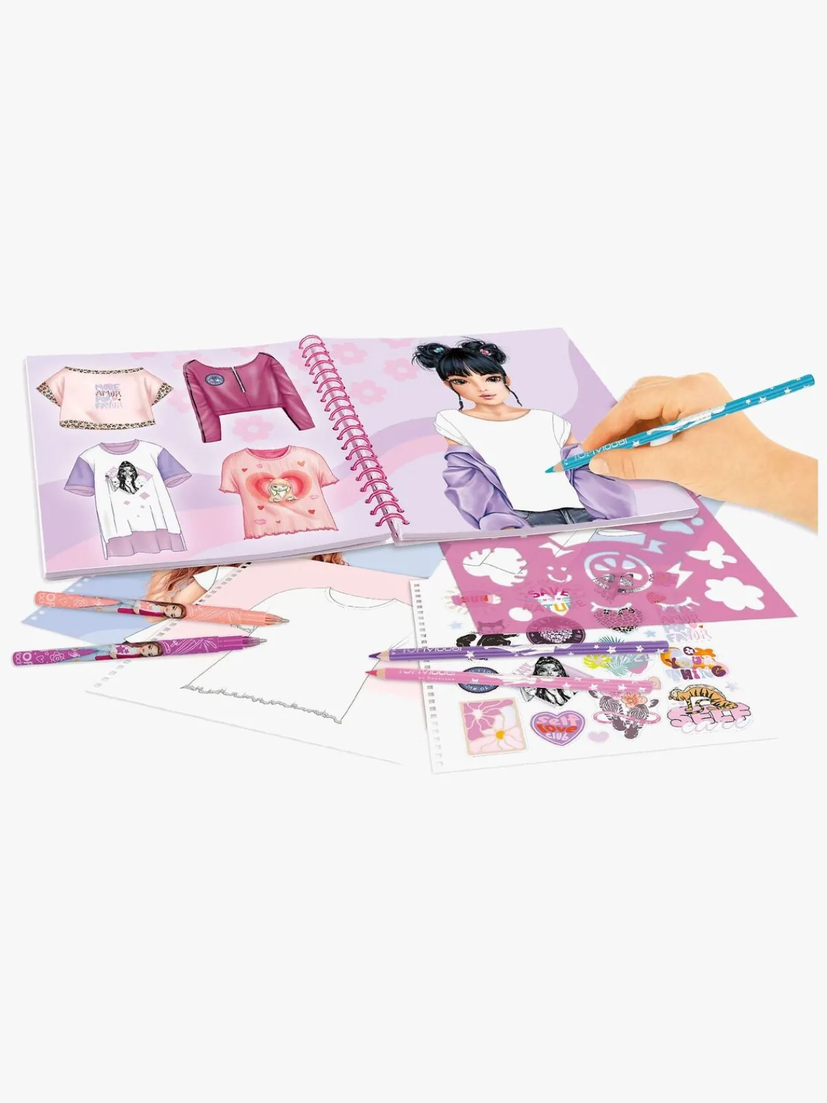 – Indeholder: 1 designbog, 2 skabeloner, 1 klistermærkeark, 1 brugsvejledning.