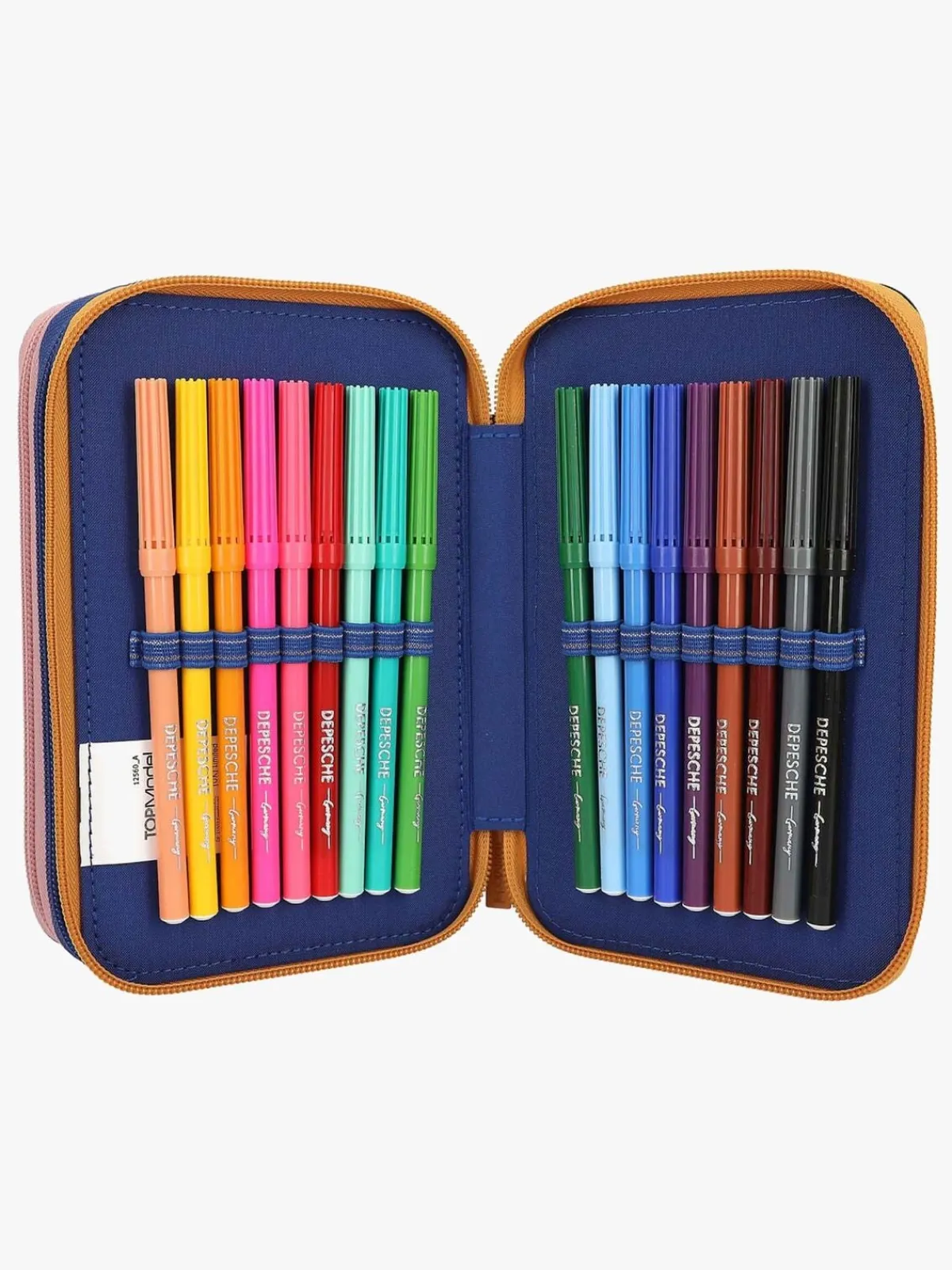 – Indeholder: 18 farvepenne, 18 filttusser, 1 viskelæder, 2 blyanter, 1 saks, 1 limstift, 1 lineal, 1 blyantspidser.