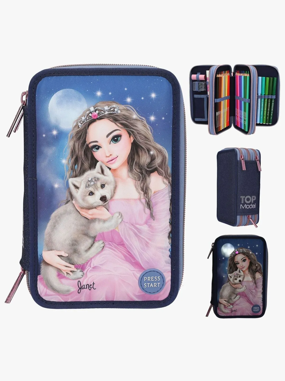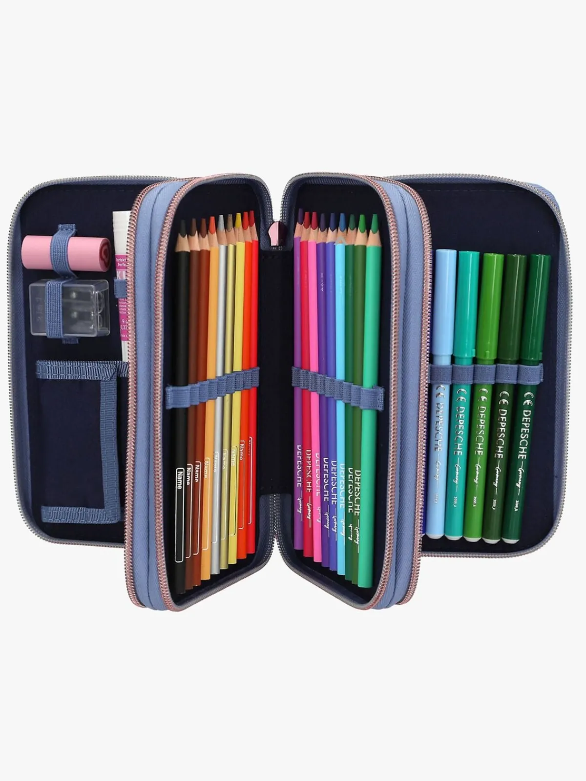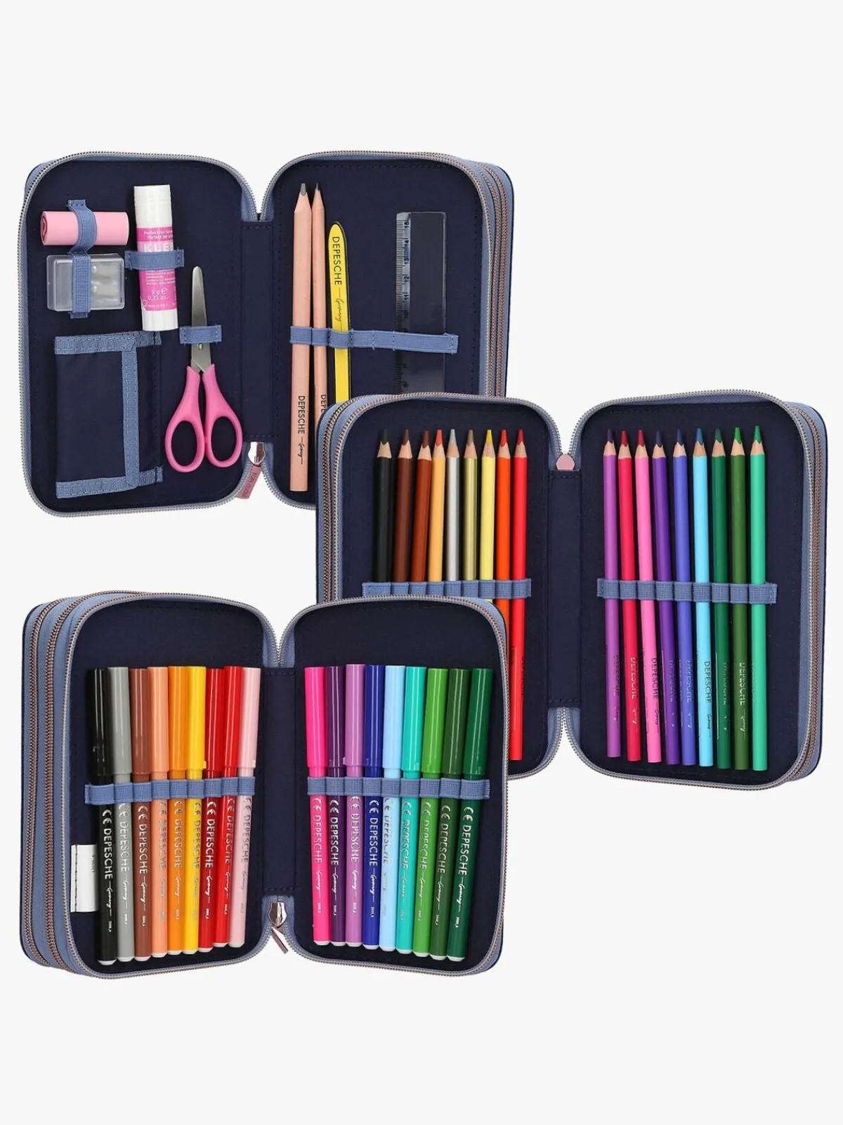 – Indeholder: 1 penalhus, 18 farveblyanter, 18 tusser, 2 blyanter, 1 saks, 1 limstift, 1 blyantspidser, 1 lineal, 1 viskelæder.