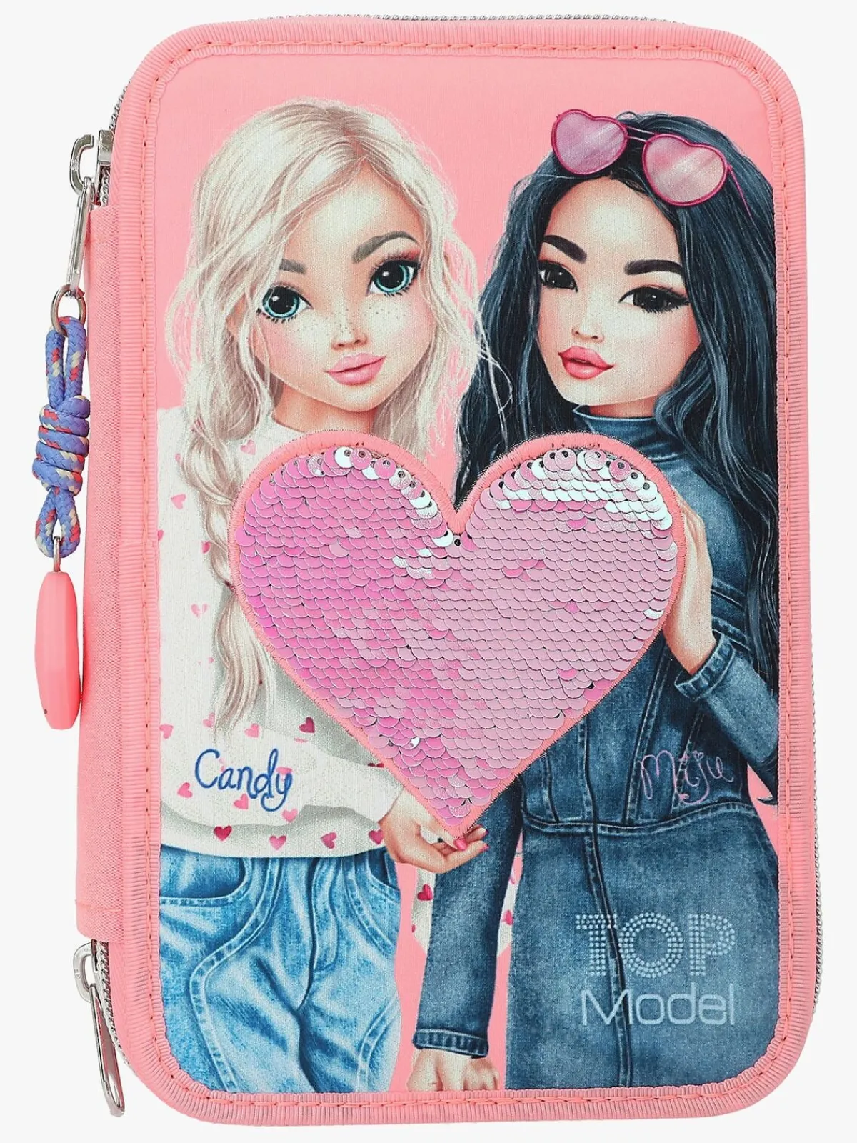 Kreativt Legetøj-TOPModel LEOHEART Penalhus med 3 Rum Hayden Lyserød