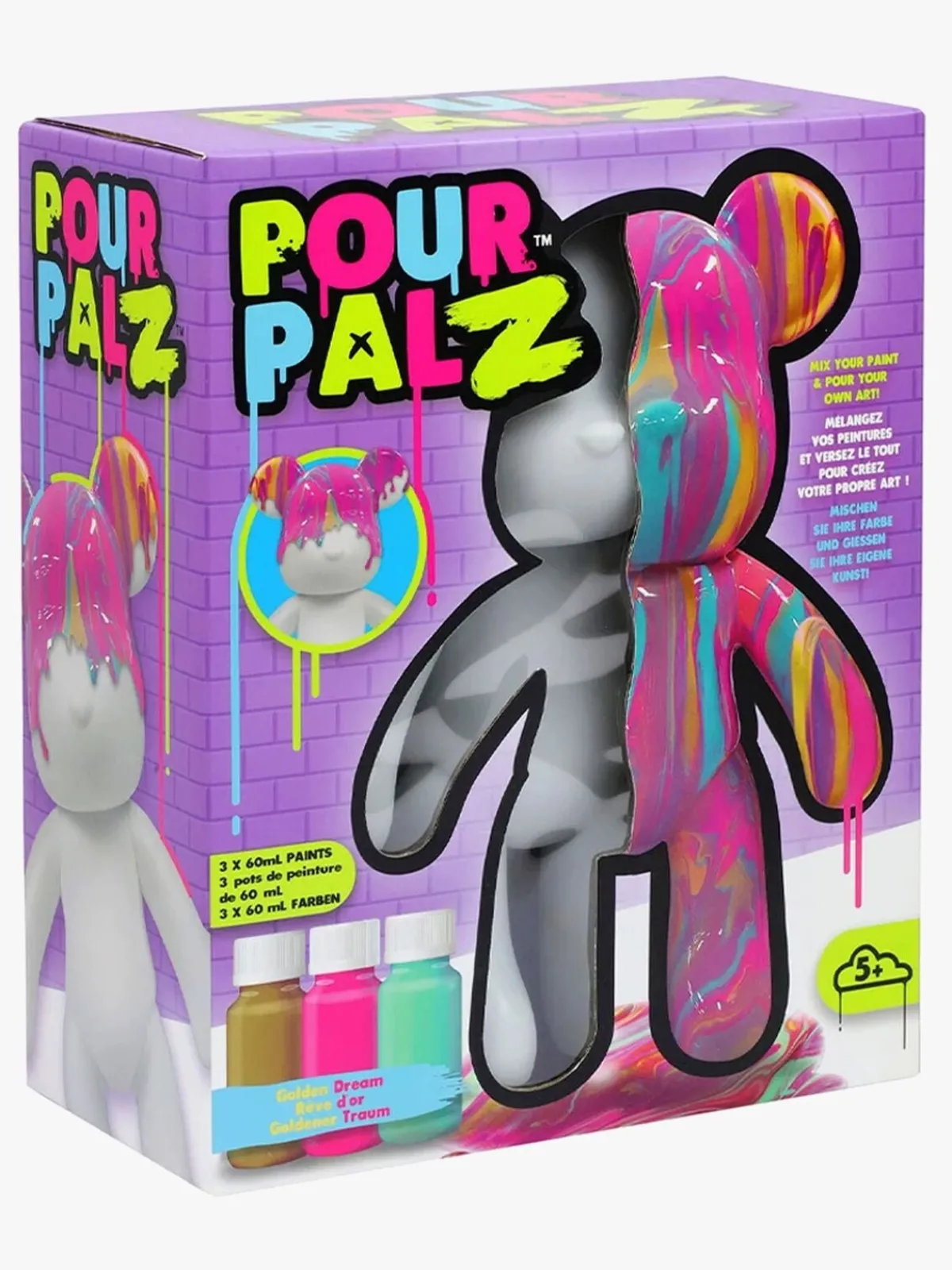 – Indeholder: 1 figur, 3 akrylfarver, 1 beskyttelsessæt.