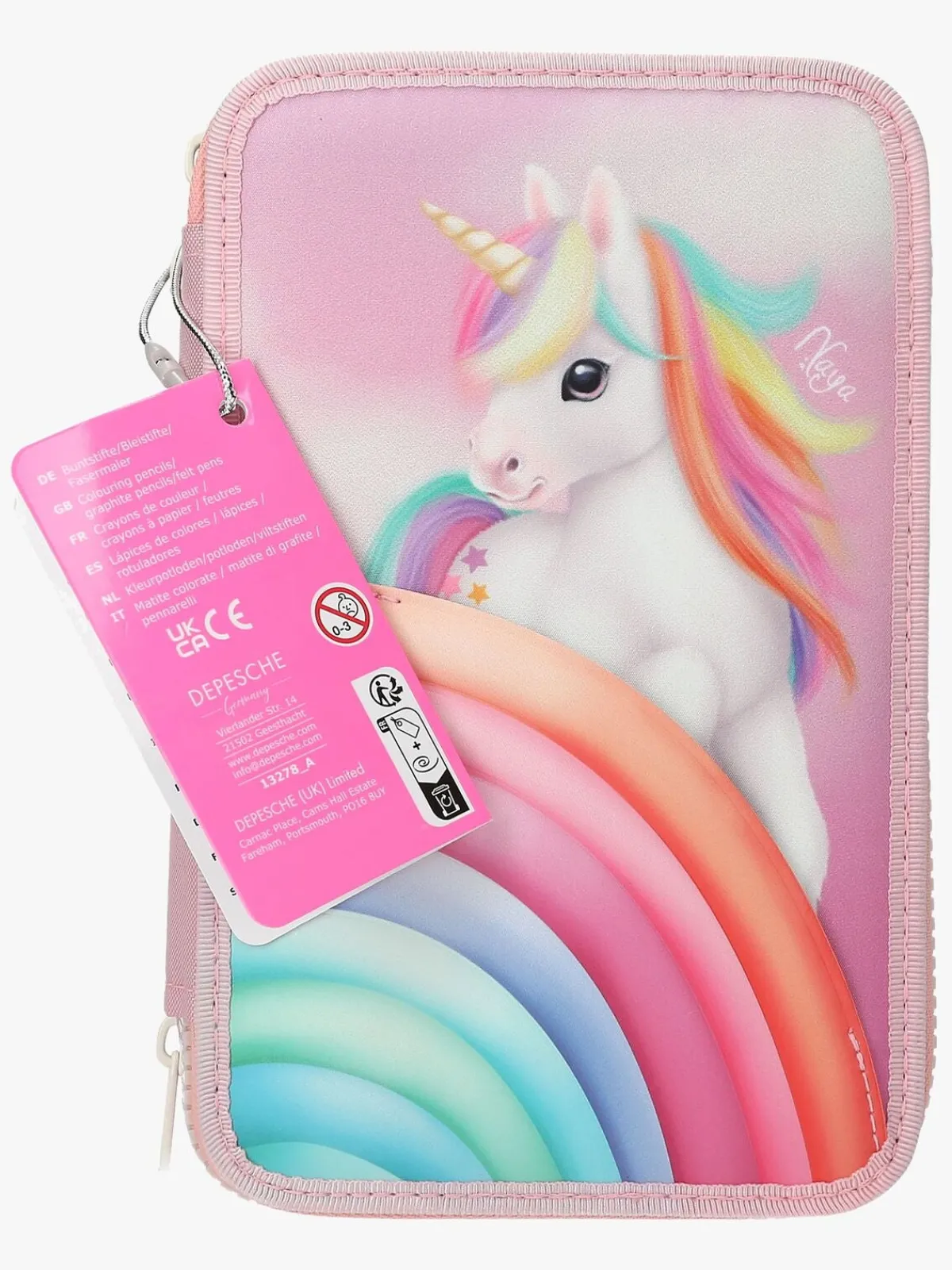– Indeholder: 1 penalhus, 18 farveblyanter, 18 tusser, 2 blyanter, 1 saks, 1 limstift, 1 blyantspidser, 1 lineal, 1 viskelæder.