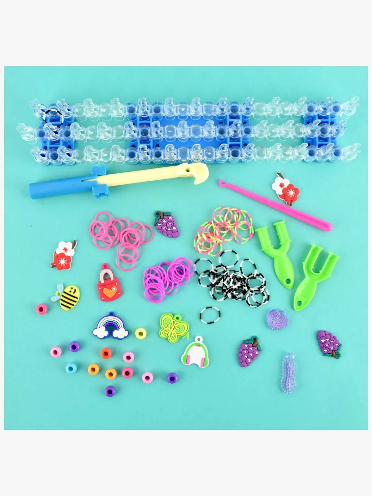 Loomband-kit fra Robetoy, med hele 5.600 dele. Kittet indeholder blandt andet værktøj, instruktioner, elastik i masser af farver, perler og andet tilbehør, så du kan lave farverige armbånd, ringe og meget andet. Sættet kommer i en praktisk æske, der er let at have med omkring.