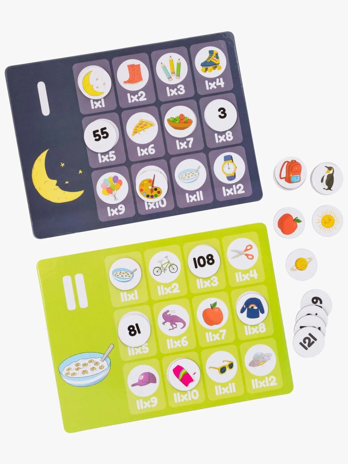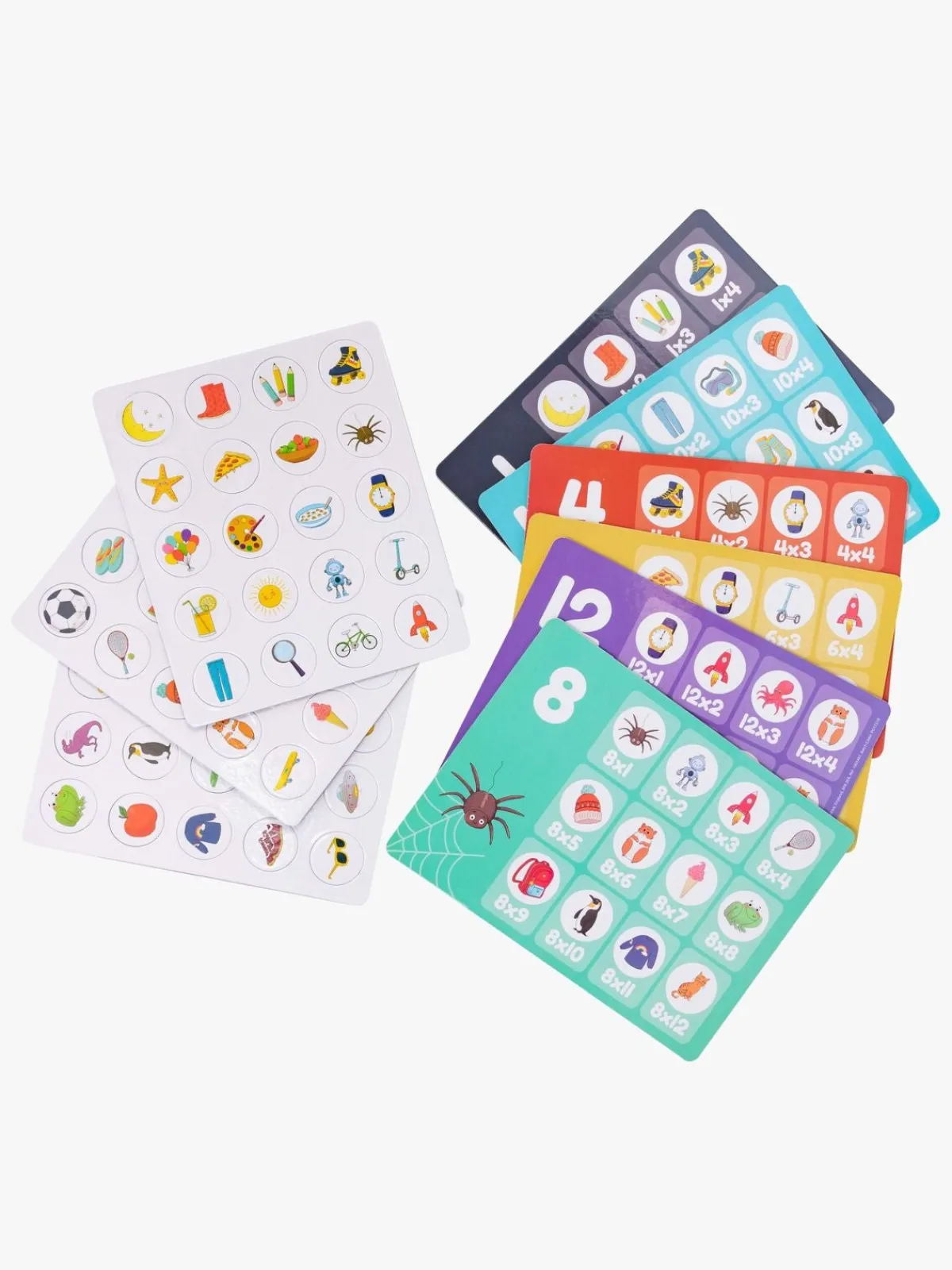 – Indeholder: 6 dobbeltsidige multiplikationskort, 59 tællemærker.