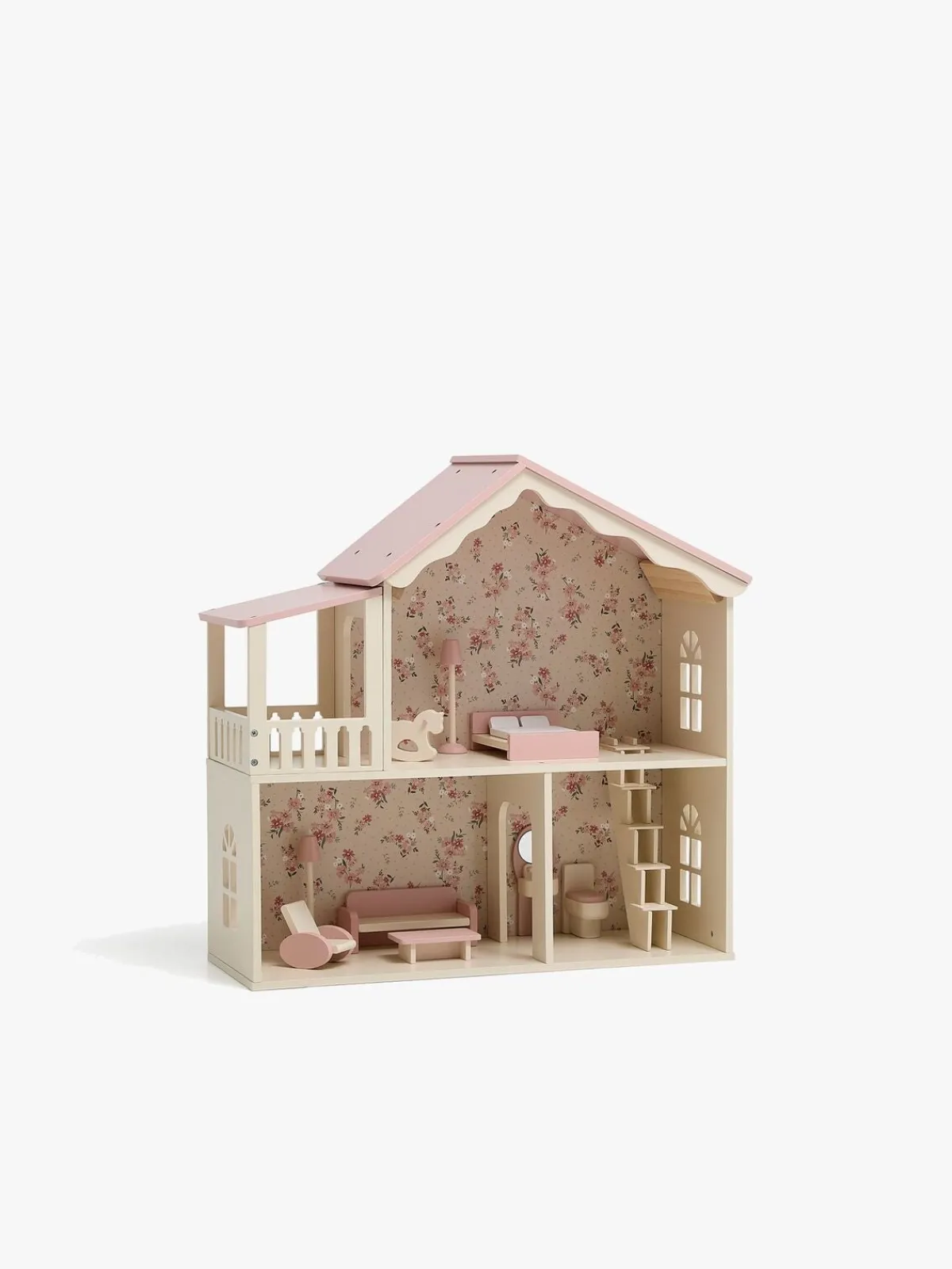 – Indeholder: 1 dukkehus, 9 dukkemøbler.