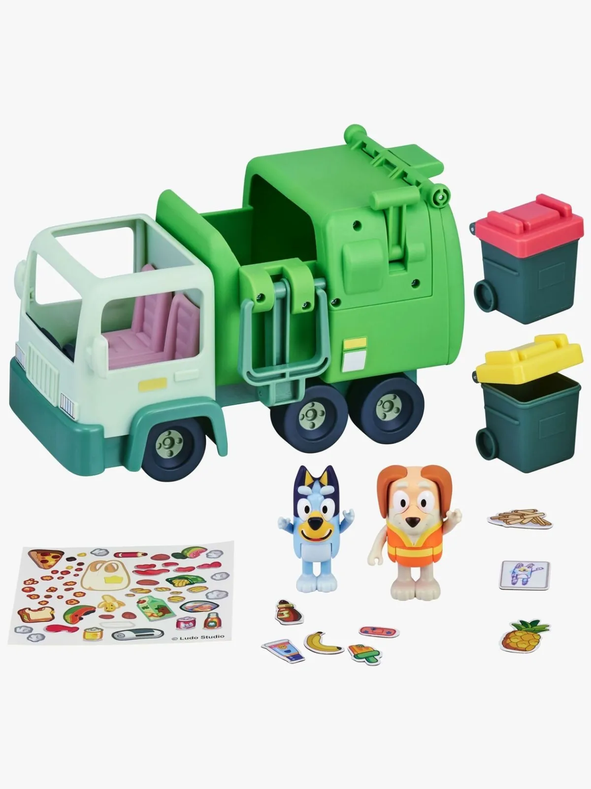 – Indeholder: 1 skraldebil, 2 figurer, 2 skraldespande, 8 tilbehør, 1 klistermærkeark.