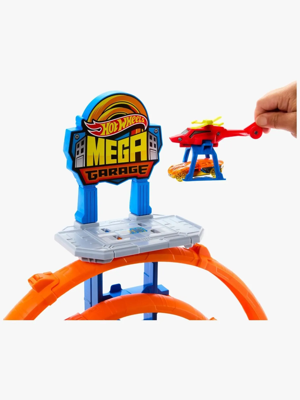 – Indeholder: 1 racerbane, 1 Hot Wheels-bil, 1 helikopter.