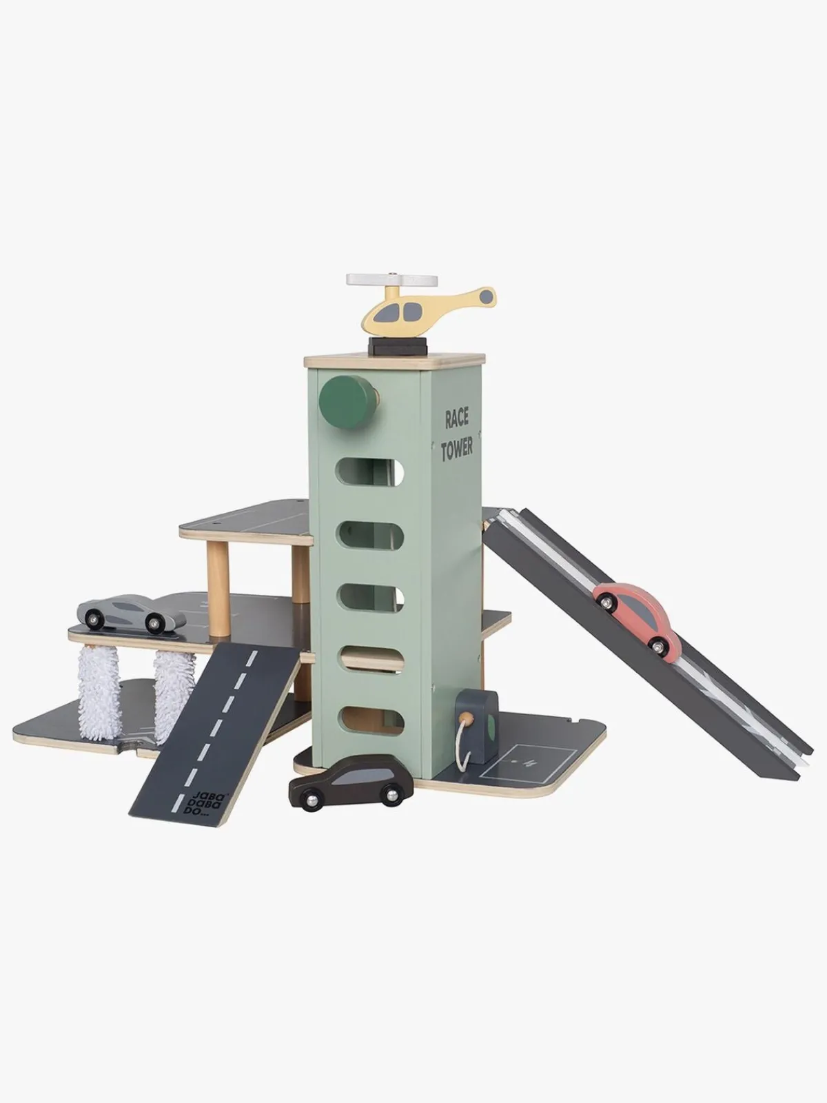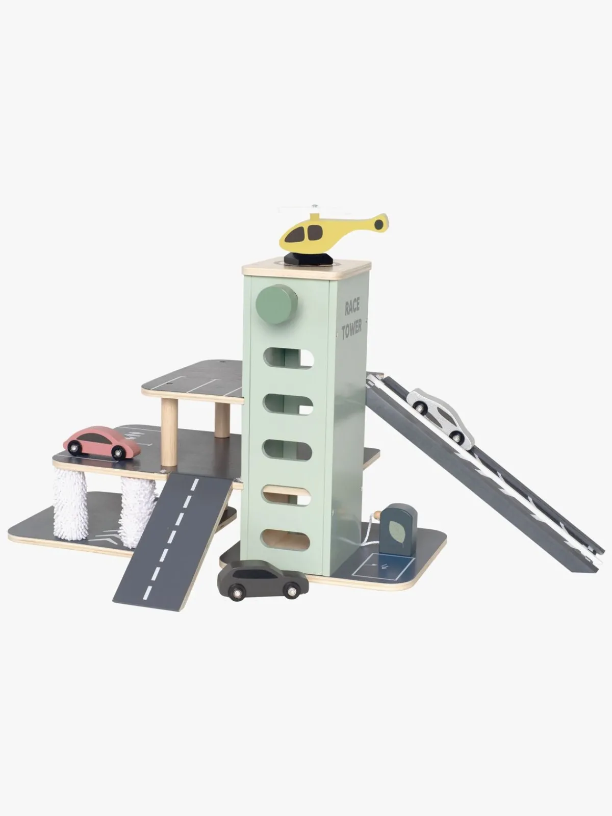 – Indeholder: 1 parkeringshus, 1 helikopterlandingsplads, 1 tankstation, 1 elevator, 1 bilvask, 3 biler, 1 helikopter, 2 ramper.
