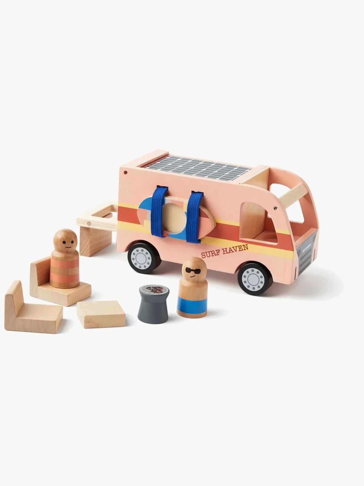 – Inkluderer: autocamper, 2 stole, bord, surfbræt.
