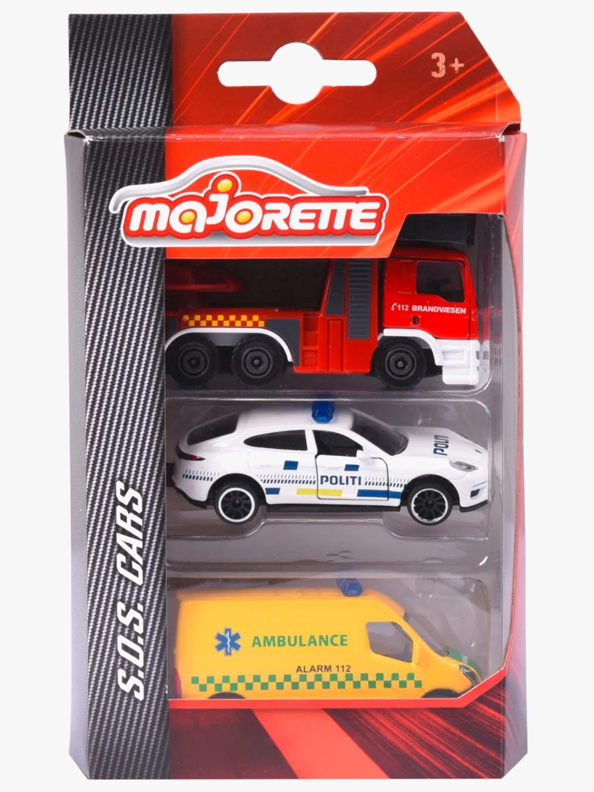 – Indeholder: 1 ambulance, 1 politibil, 1 brandbil.