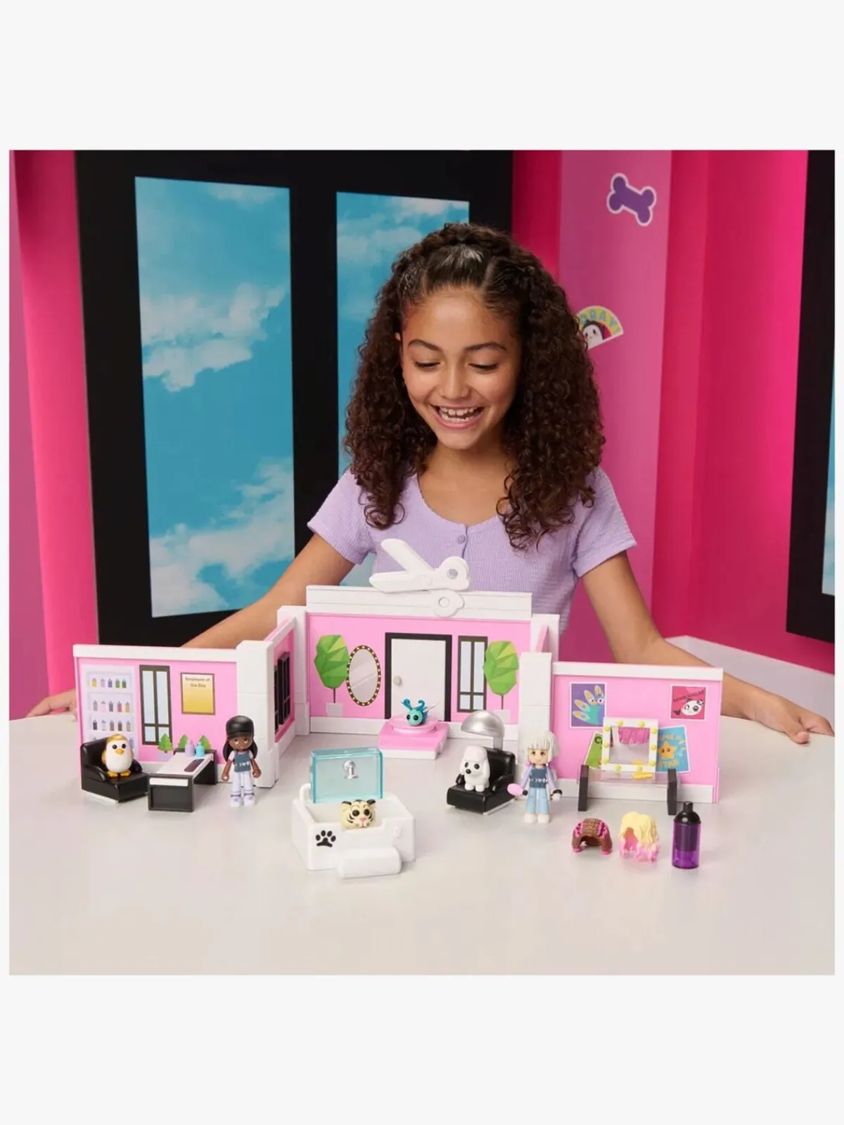 – Indeholder: 2 figurer, 4 kæledyr, 15 stk. salontilbehør, 1 UV-lys.