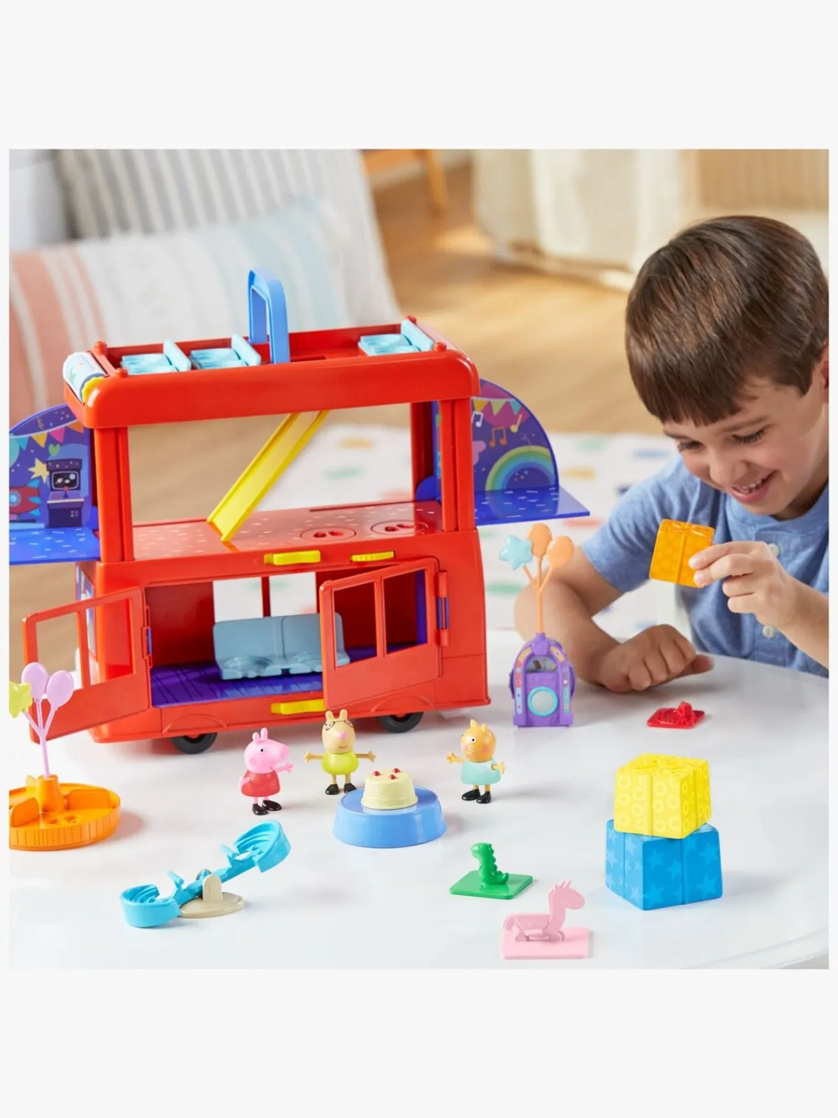 – Indeholder: 1 partybus, 10 tilbehør, 3 figurer.