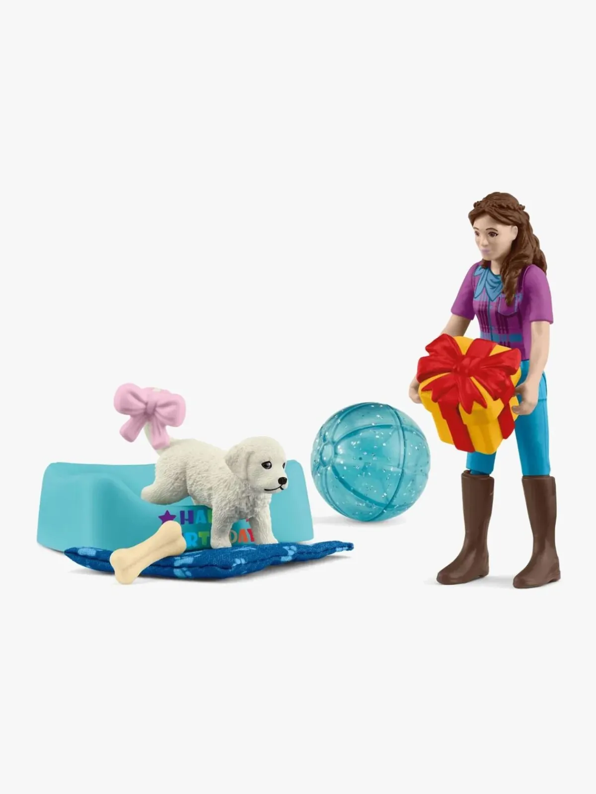 – Indeholder: 1 figur, 1 hundehvalp, 1 hundekurv, 1 hundetæppe, 1 badebold, 1 gnaveben, 1 gave, 1 sløjfe, 1 klistermærkeark.