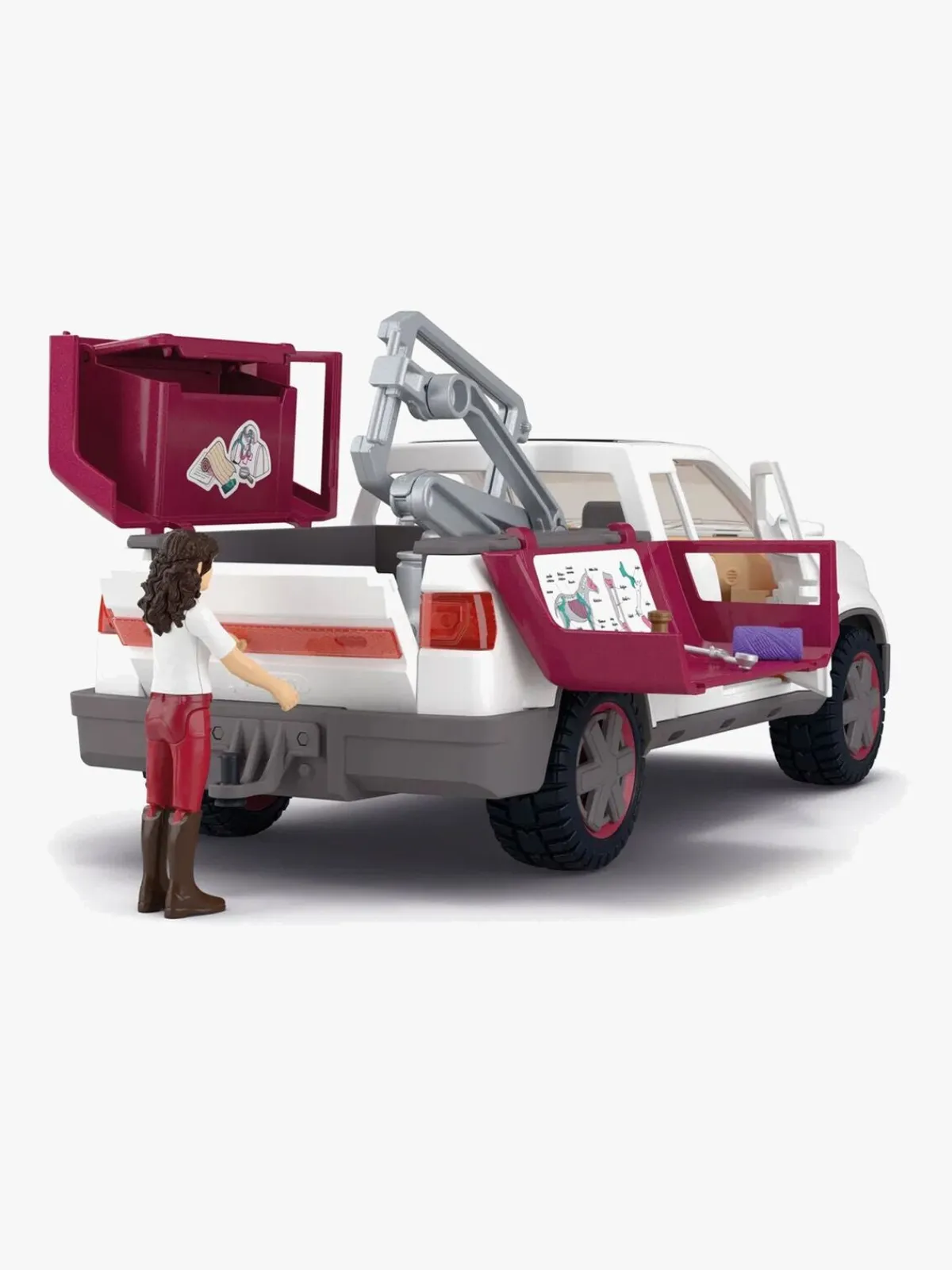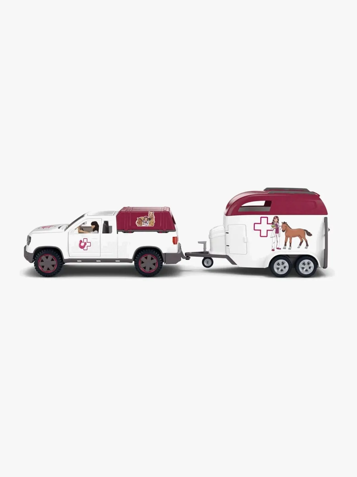 – Indeholder: 1 figur, 1 hest, 1 bil, 1 anhængervogn.