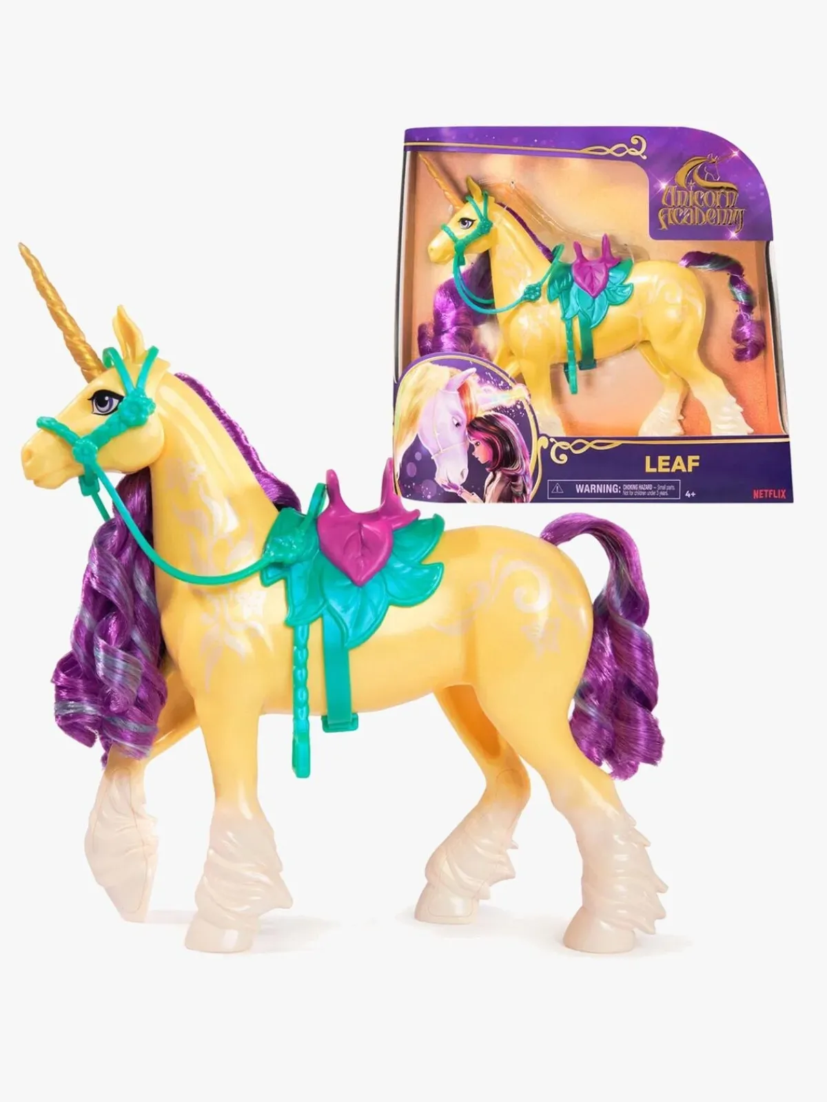 – Indeholder: 1 enhjørning, 1 sadel, 1 hovedtøj.