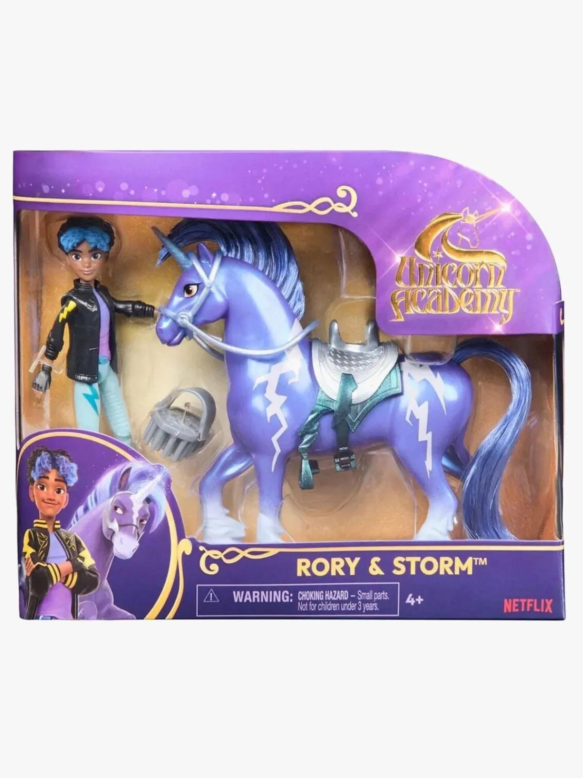 – Indeholder: 1 dukke, 1 enhjørning, 1 hovedtøj, 1 sadel, 1 børste.