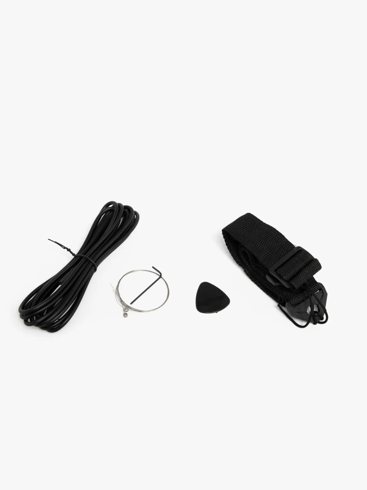 – Indeholder: 1 elektrisk guitar, 1 forstærker, 1 guitarkasse, 1 kabel, 1 plukke, 1 sæt med guitarstrenge, 1 guitarrem.