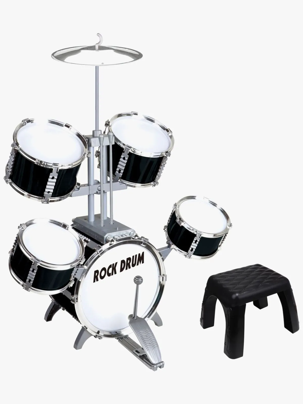 – Indeholder: 1 stortromme, 2 de store pukaer, 2 de små pukaer, 1 bækken, 1 fodpedal, 2 trommestikker, 1 skammel.