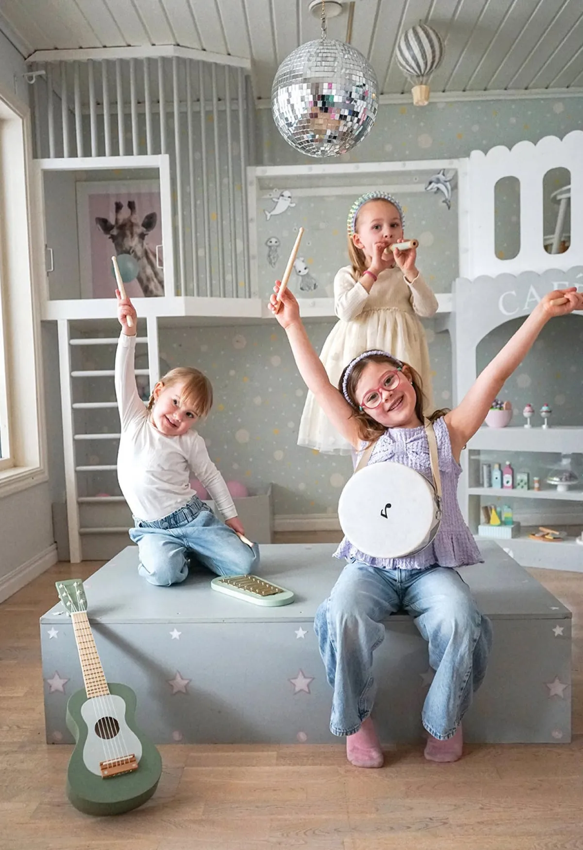 – Indeholder: 1 tromme, 2 trommestikker, 1 bærestrop.