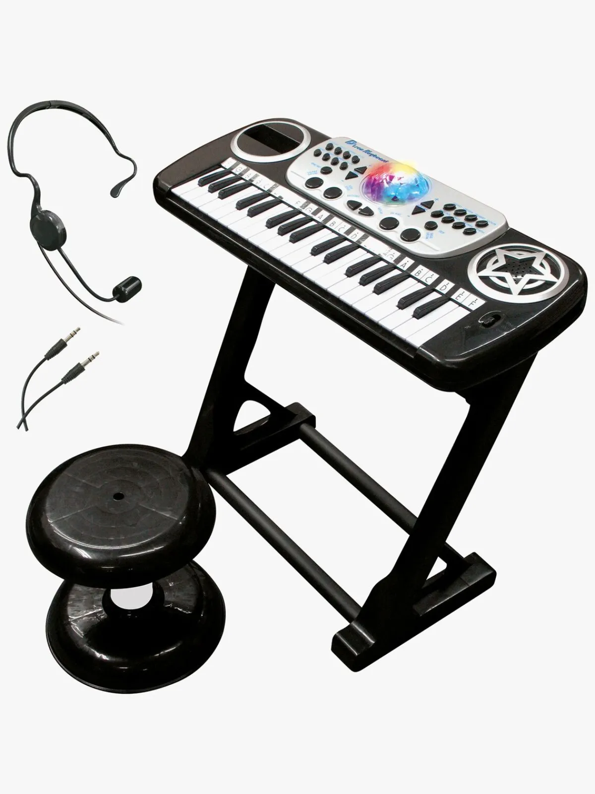 – Indeholder: 1 keyboard, 1 skammel, 1 headsetmikrofon, 1 line-in-kabel.