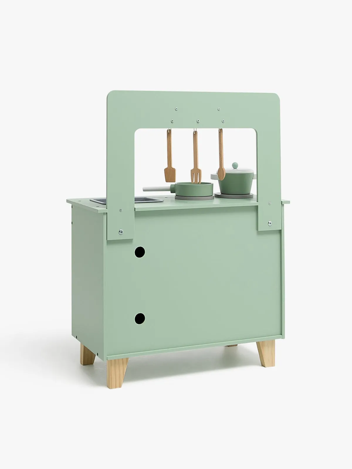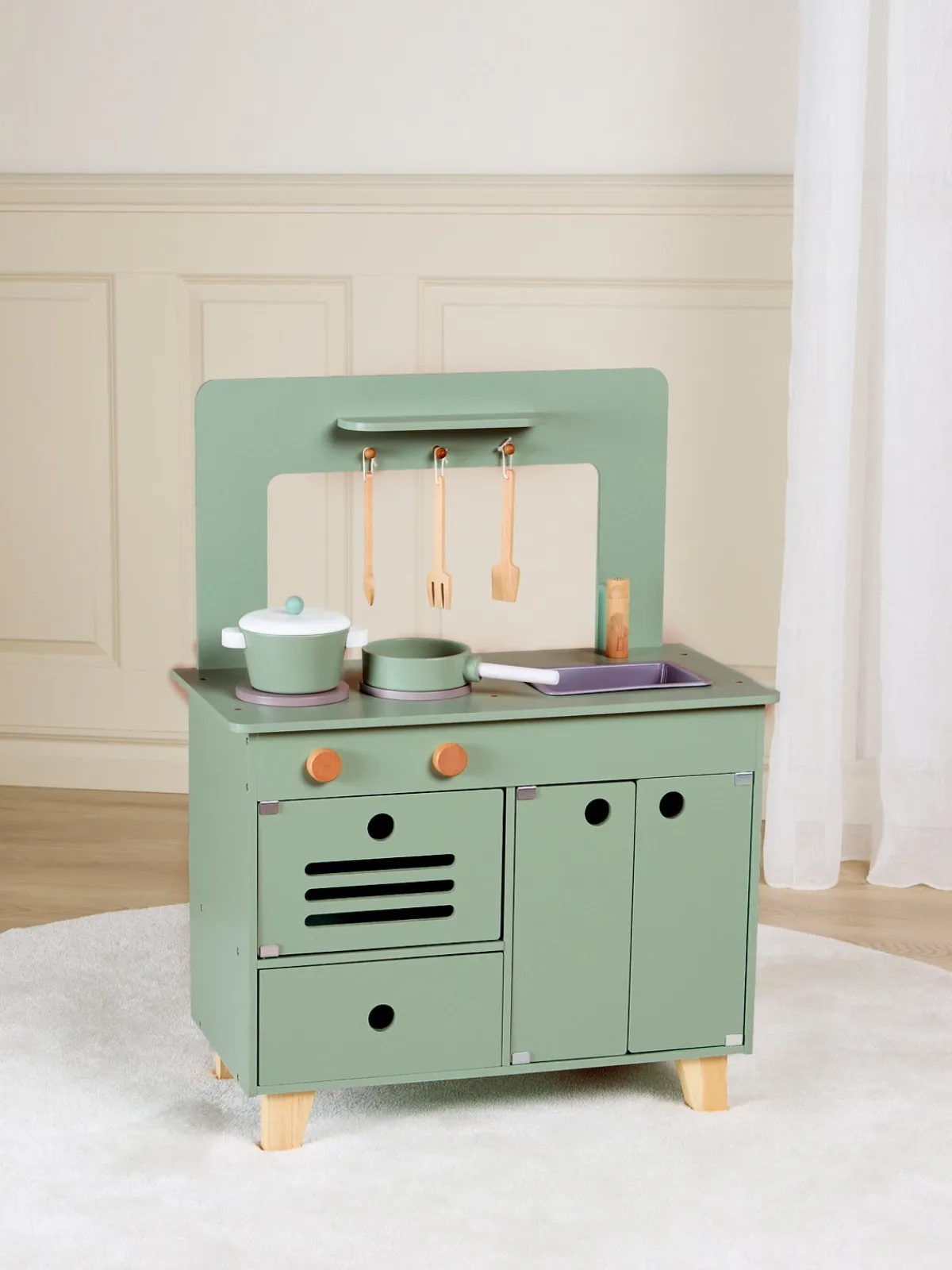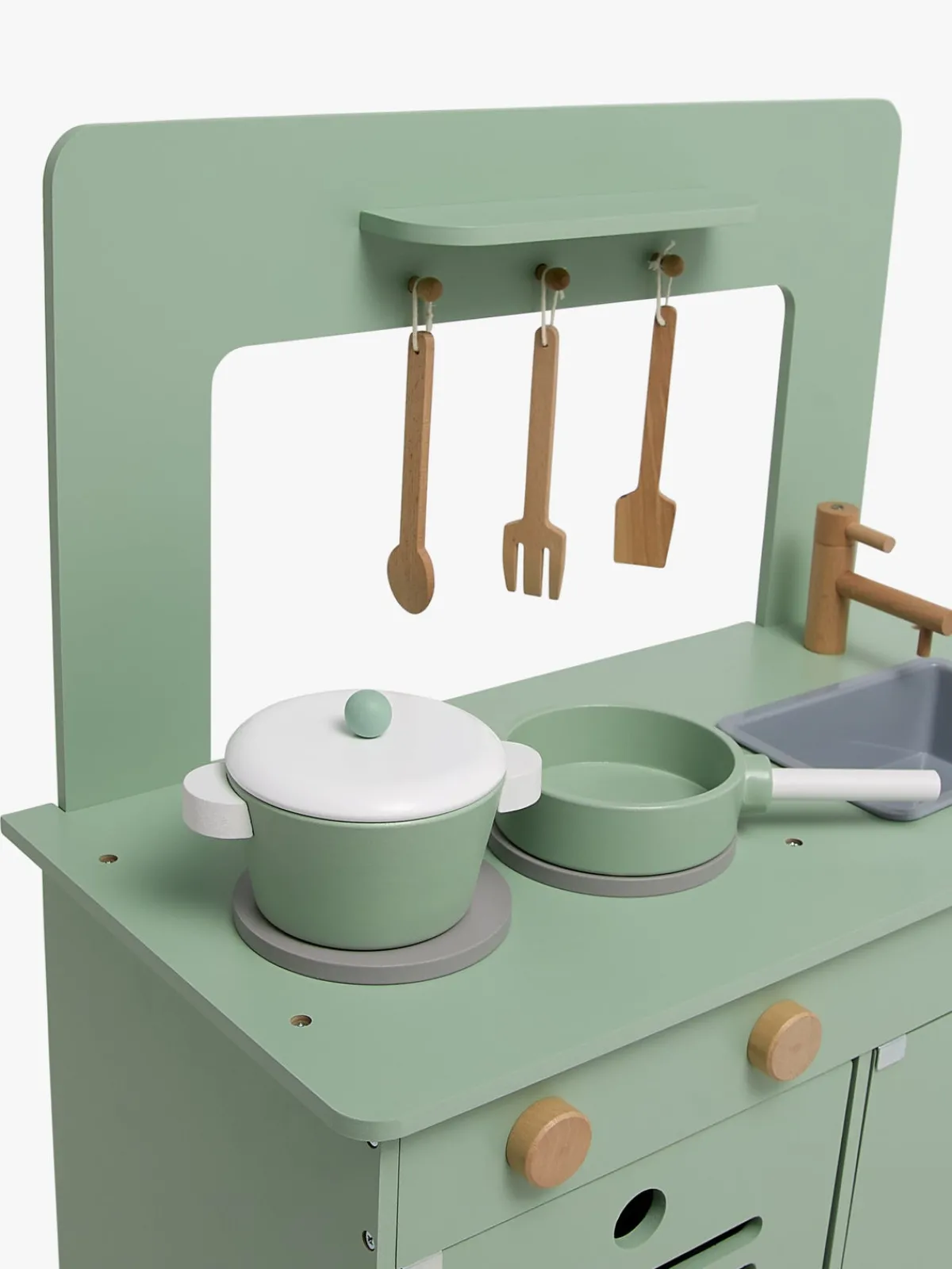 – Indeholder: 1 legekøkken, 1 gryde med låg, 1 stegepande, 3 køkkenredskaber.
