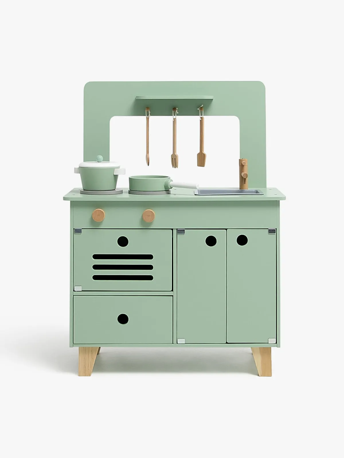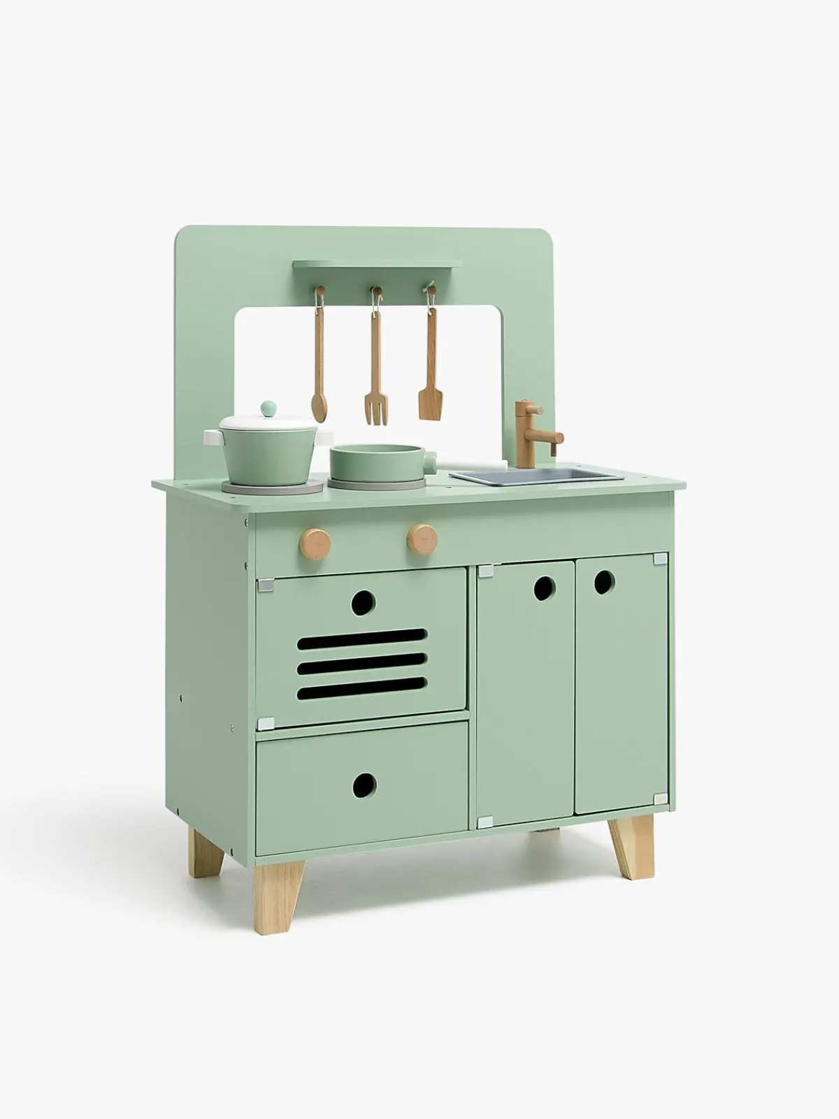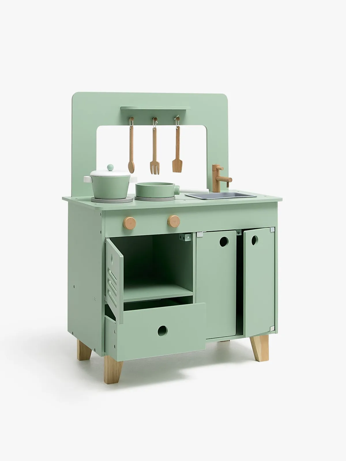 – Indeholder: 1 legekøkken, 1 gryde med låg, 1 stegepande, 3 køkkenredskaber.