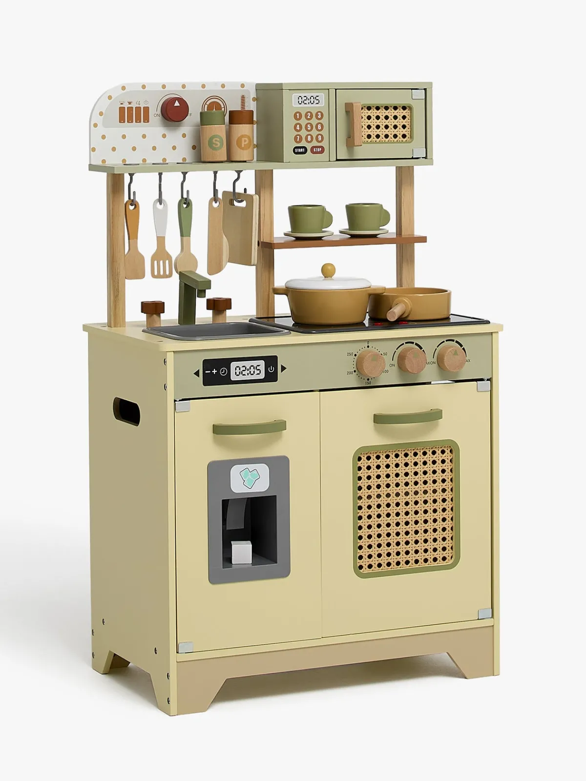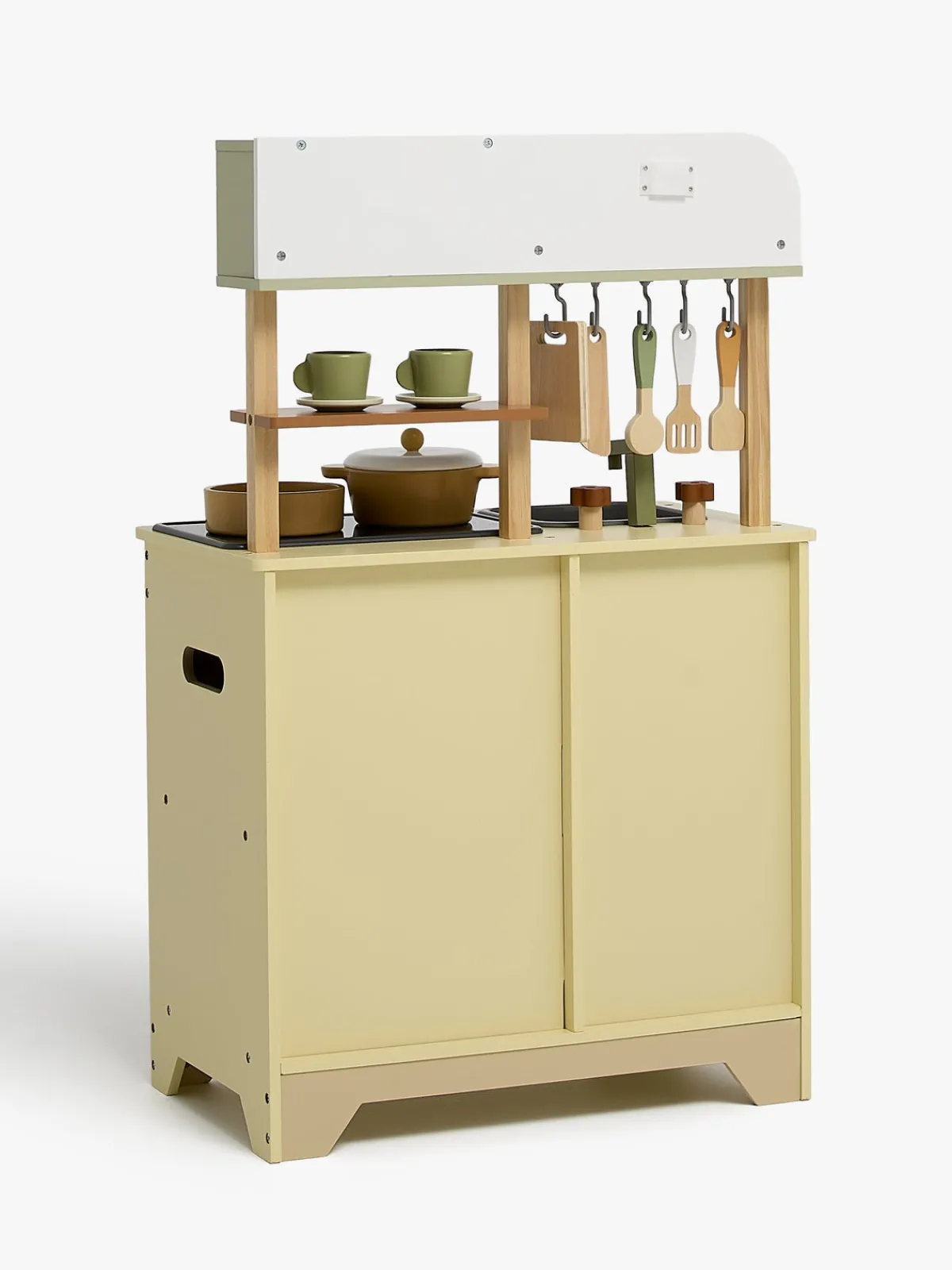 – Indeholder: 1 legekøkken, 1 kasserolle, 1 stegepande, 1 salatskål, 1 peberkværn, 5 køkkenredskaber, 2 tallerkener, 2 kopper.