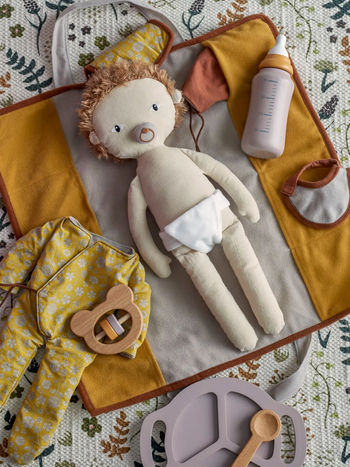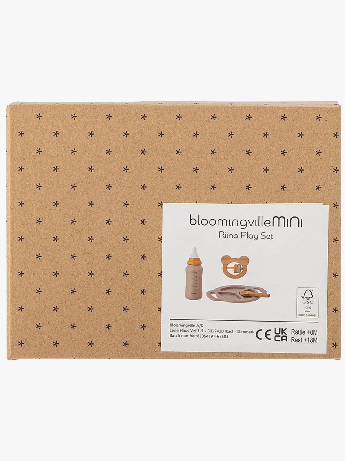 – Indeholder: 1 sutteflaske, 1 tallerken med ske, 1 rangle.