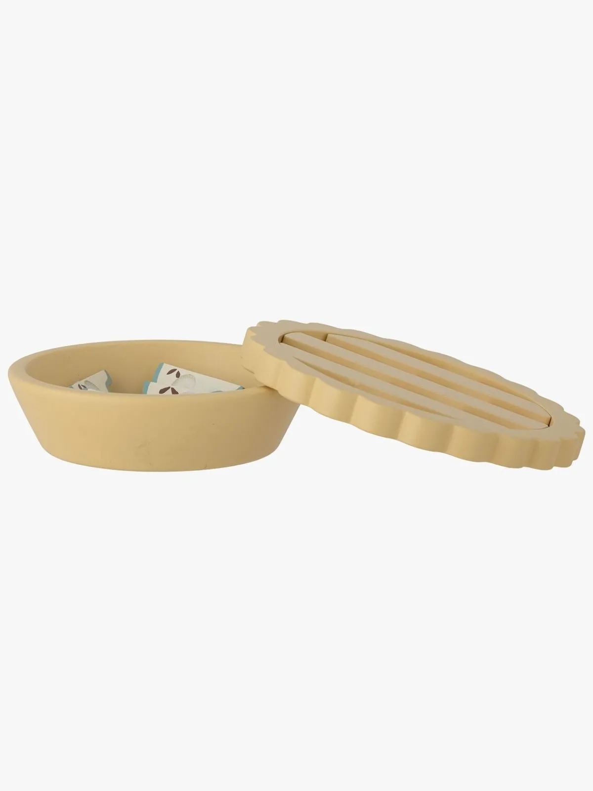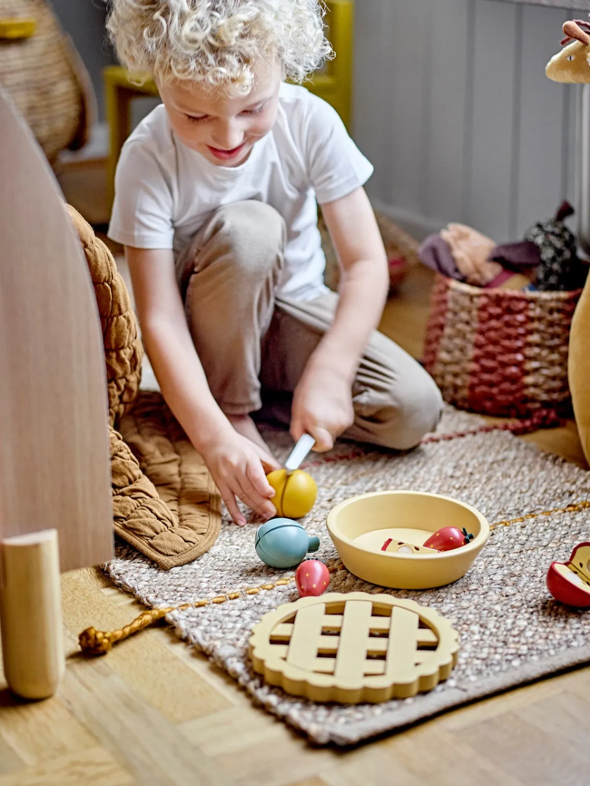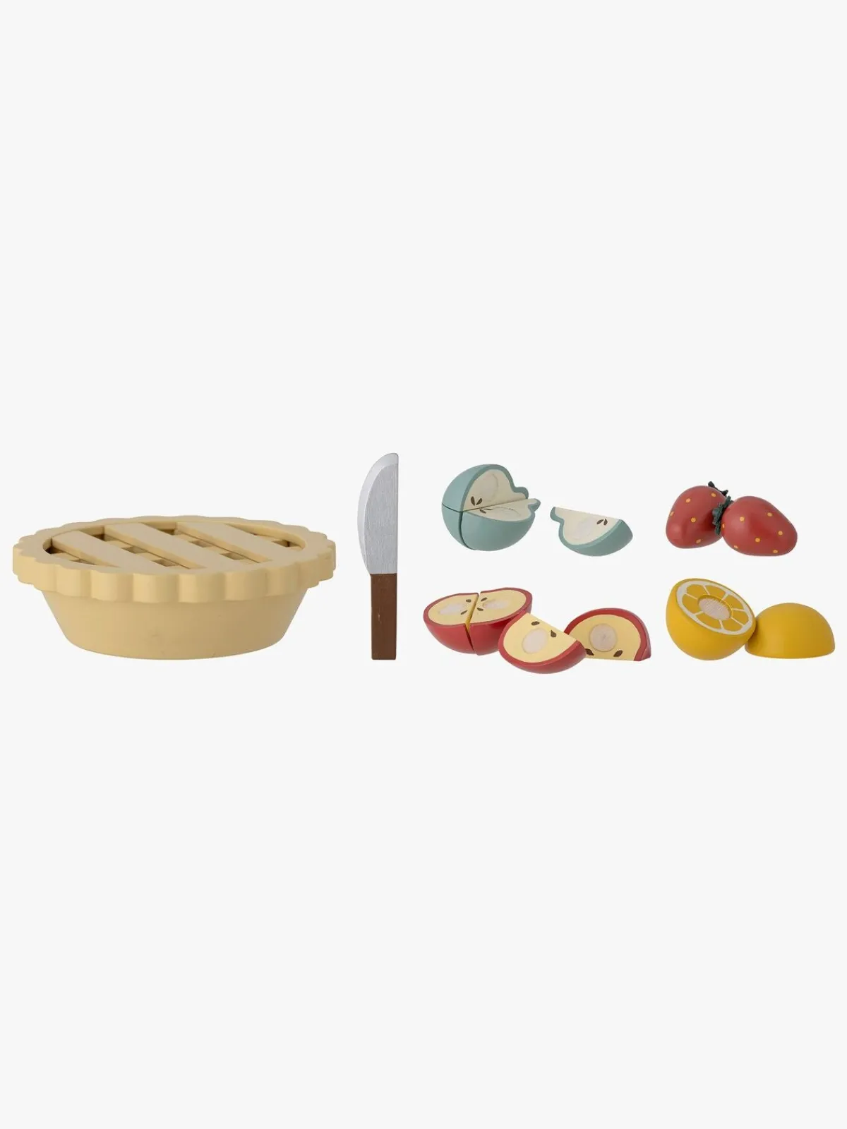 – Indeholder: 1 tærte, 1 æble med 4 dele, 1 pære med 4 dele, 1 citron med 2 dele, 2 jordbær, 1 legetøjskniv.