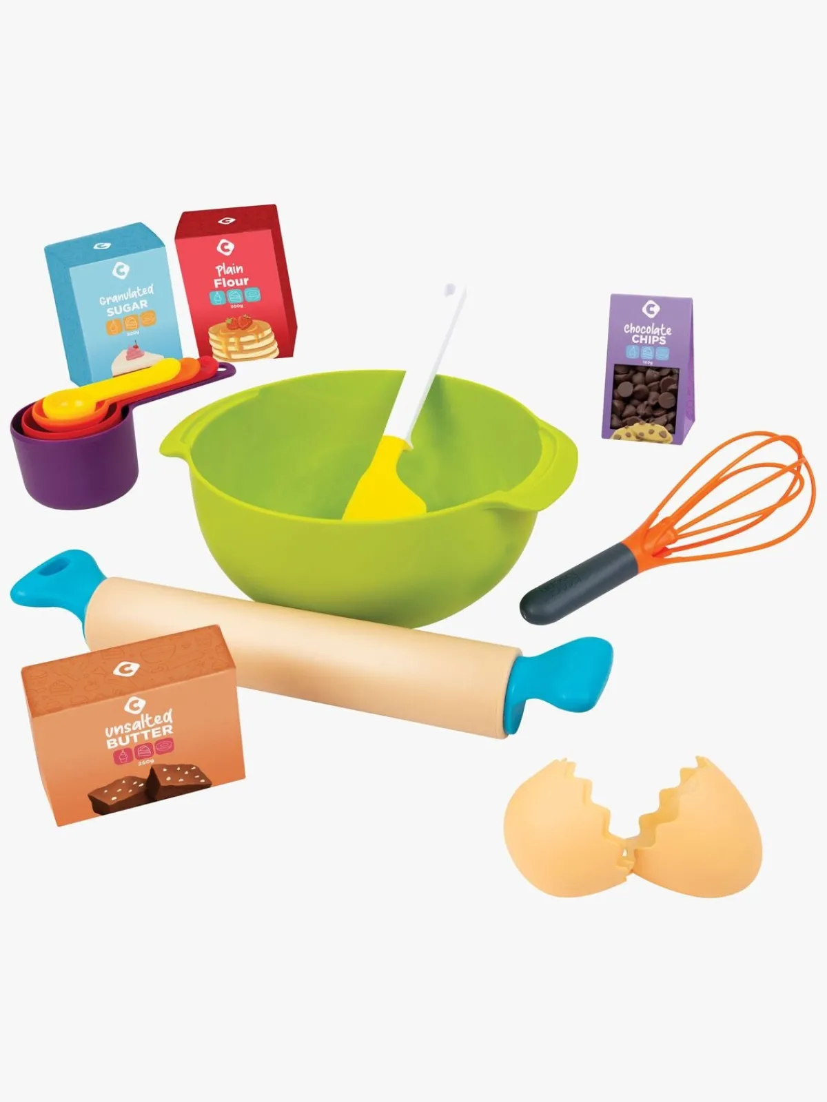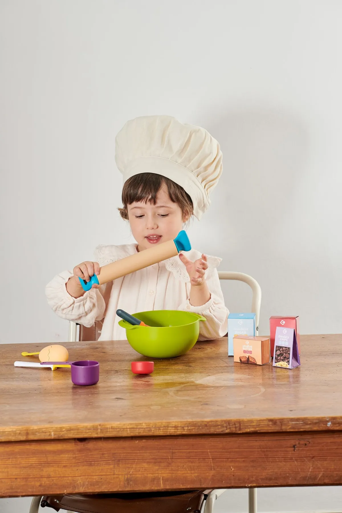 – Indeholder: 1 skål, 1 piskeris, 1 kagerulle, 4 mål, 5 ingredienser.