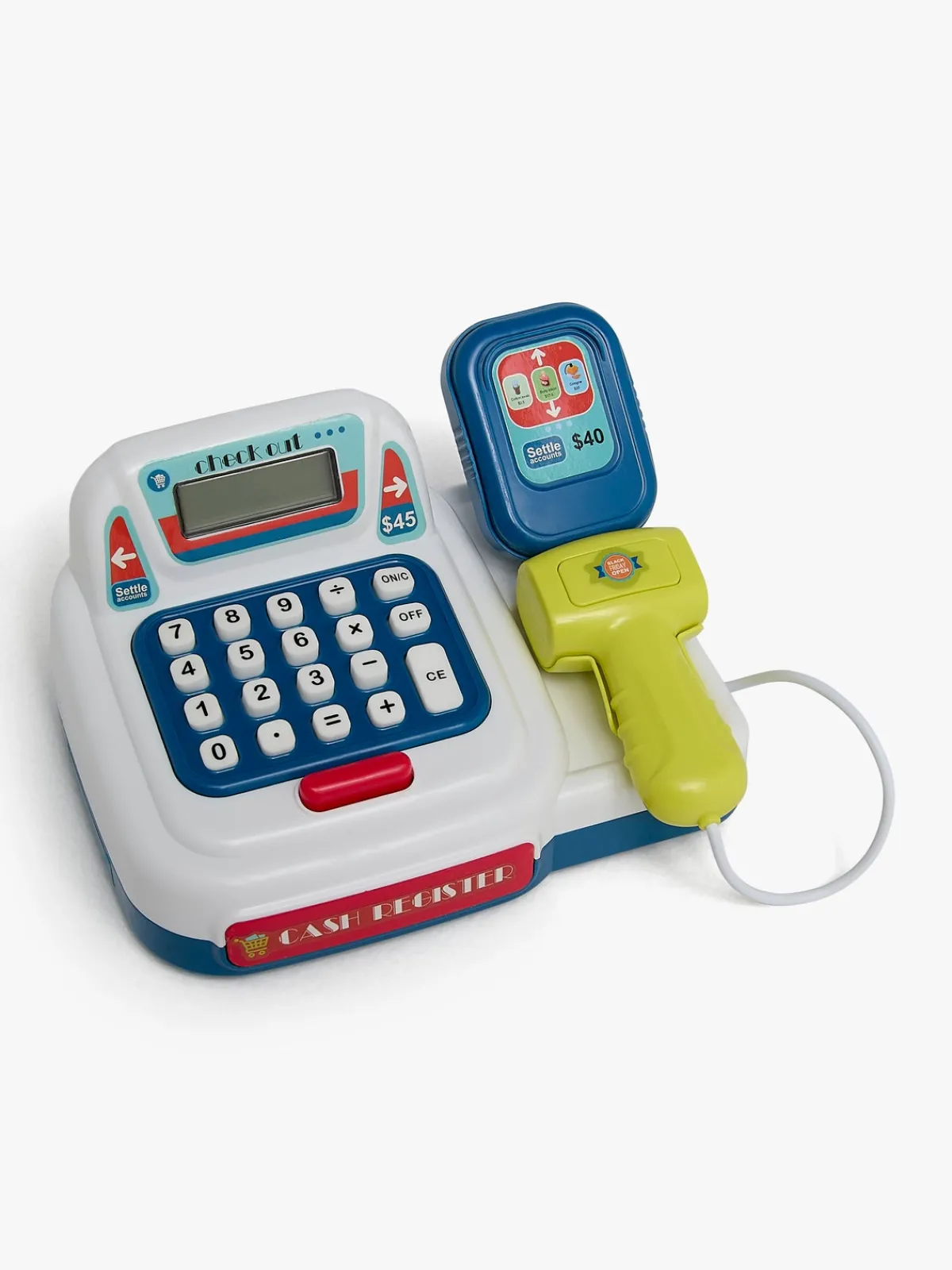 – Indeholder: Et kasseapparat, en kortlæser, mønter, sedler og en masse andet spændende tilbehør.