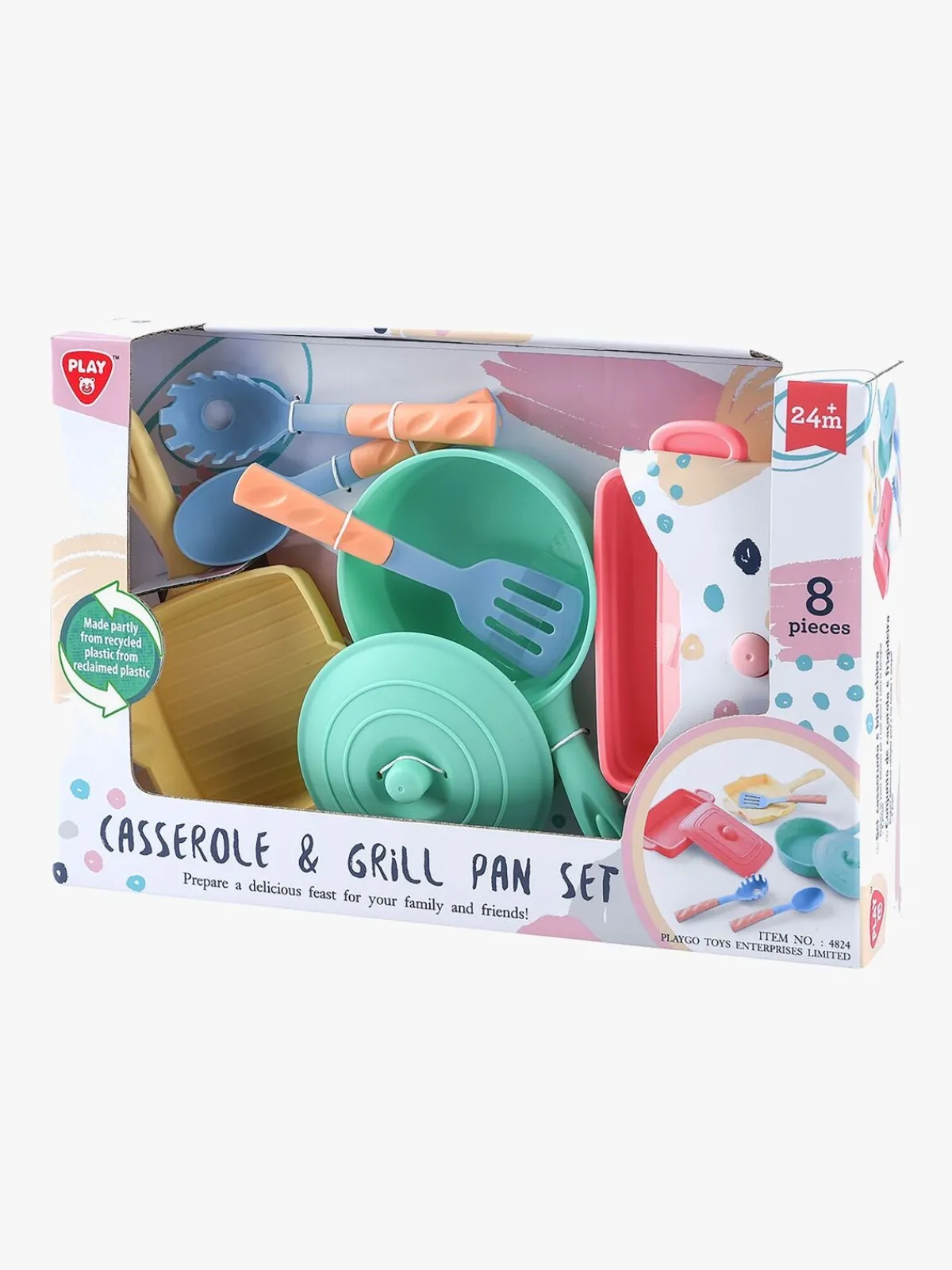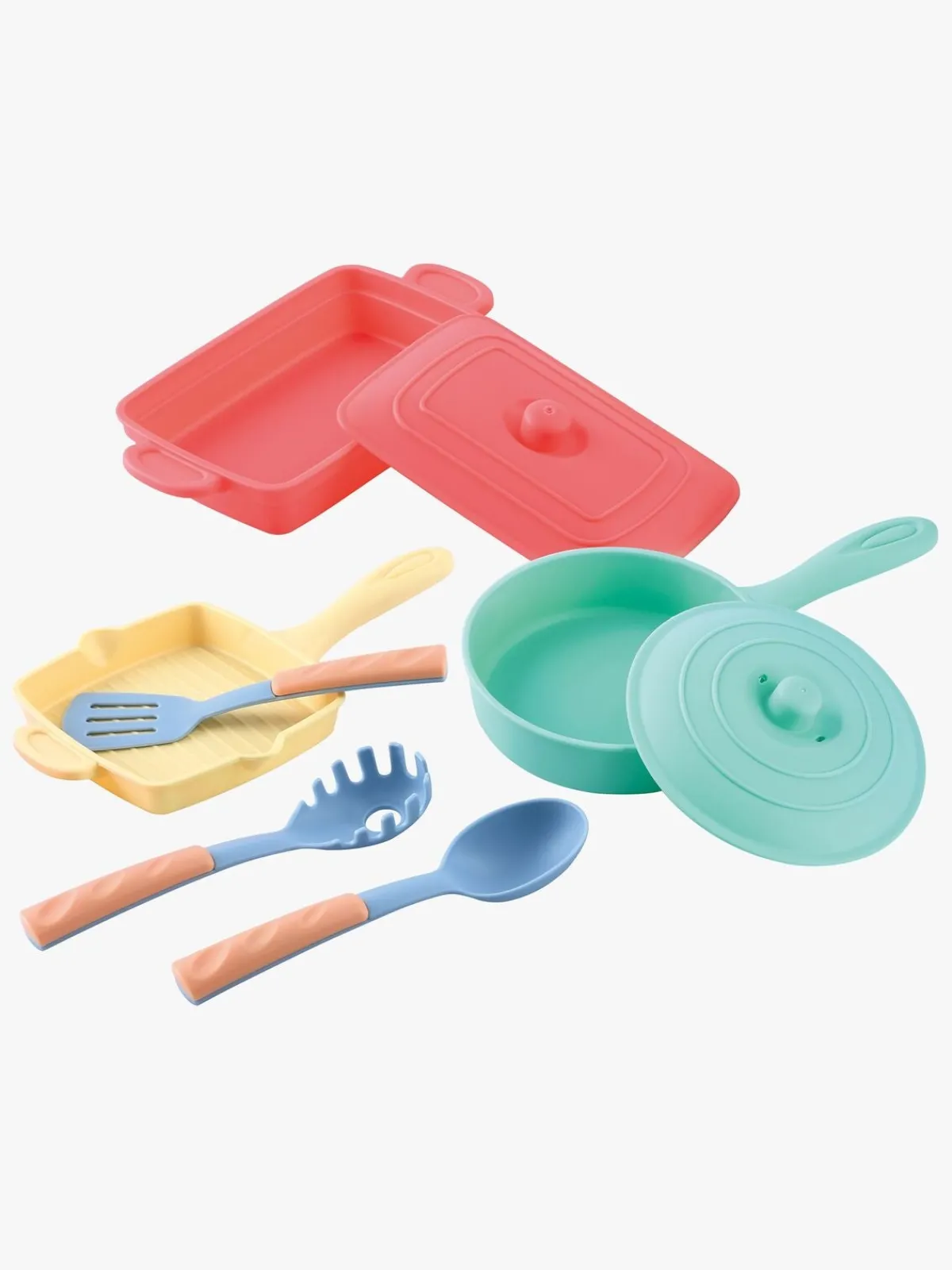 – Indeholder: 1 kasserolle, 1 grillpande, 1 stegepande, 1 paletkniv, 1 øse, 1 pasta ske.