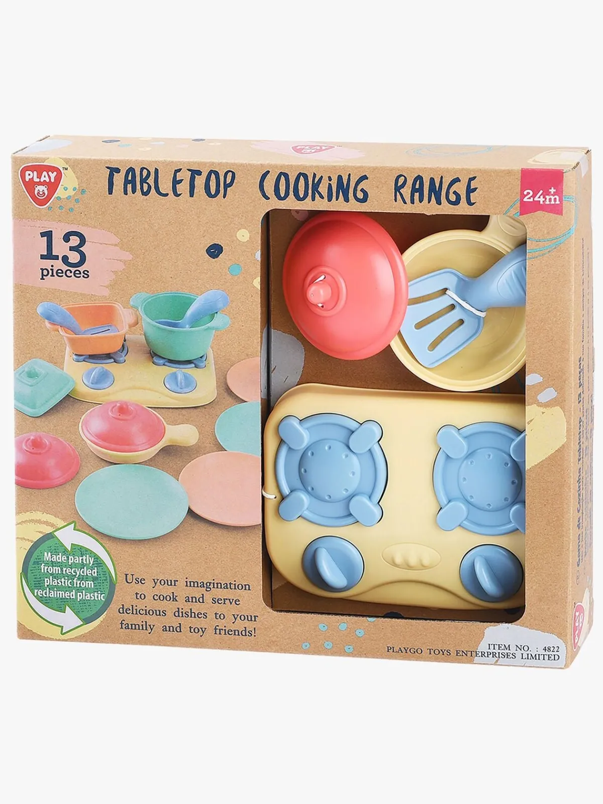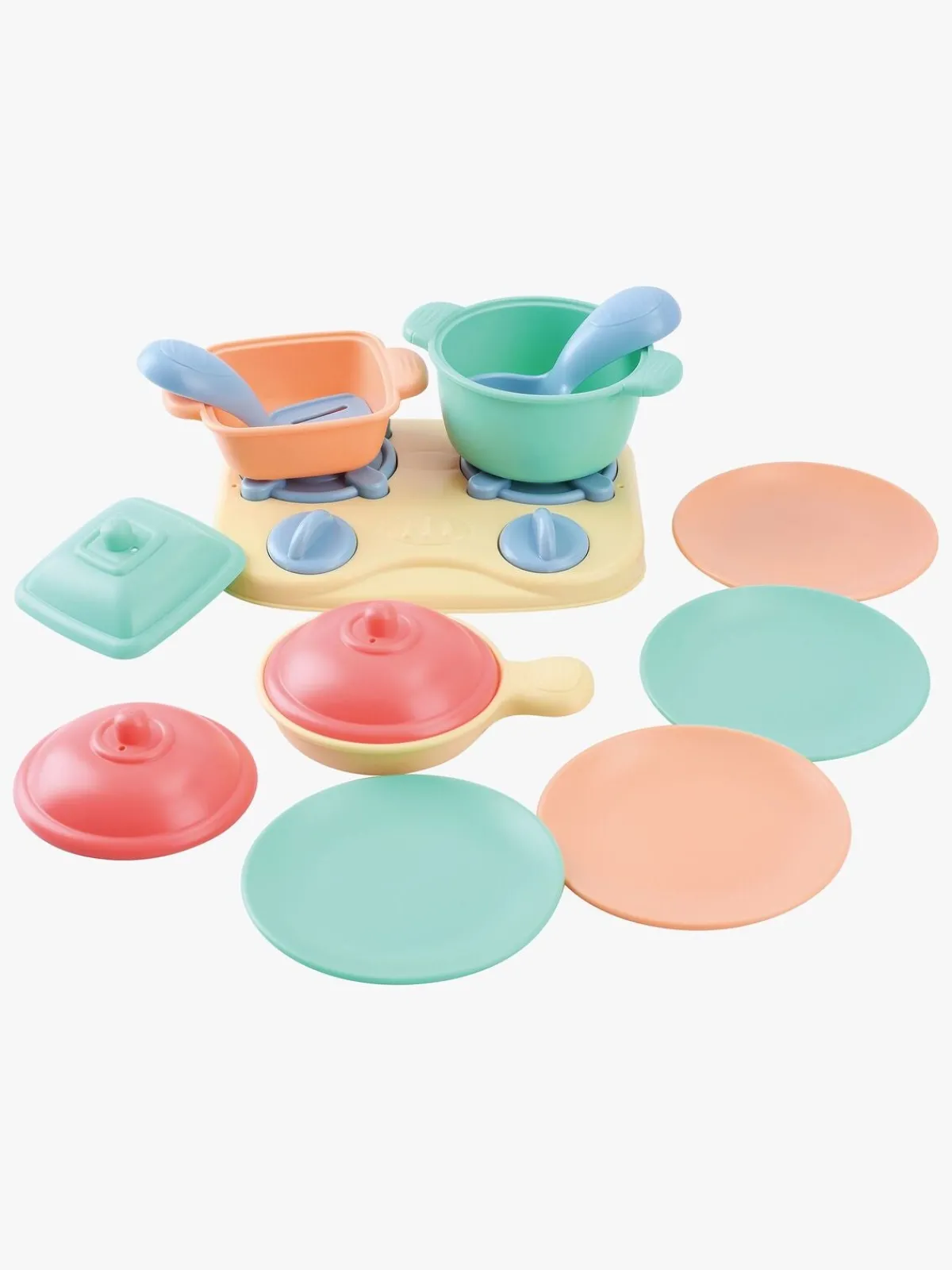 – Indeholder: 1 kogeplade, 1 stegepande, 1 kasserolle, 1 gryde, 4 tallerkener, 1 paletkniv, 1 øse, 3 låg.