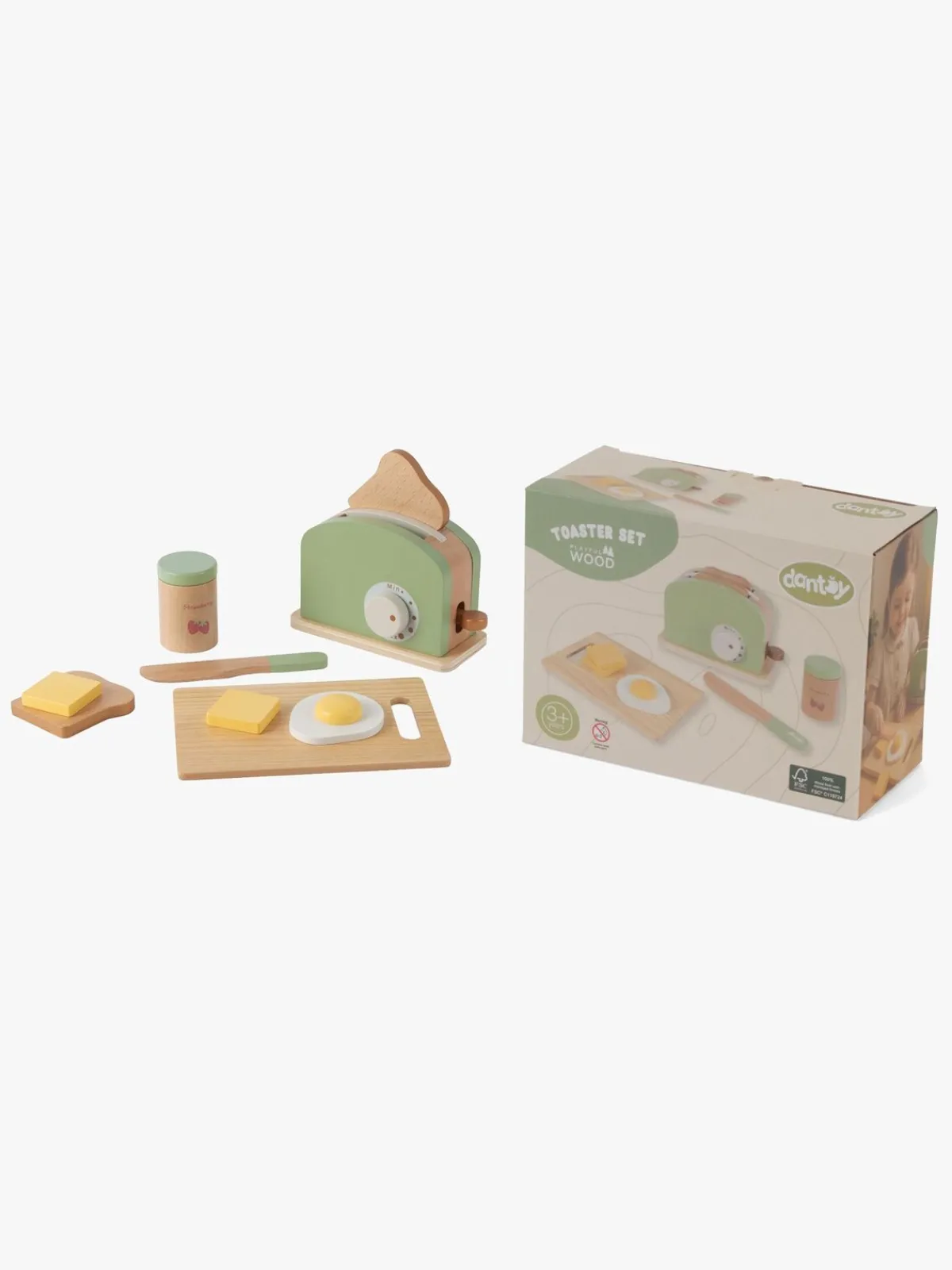 – Indeholder: 1 brødrister i træ, 2 brødskiver, 1 trækniv, 1 skærebræt, 1 sæt med toppings.