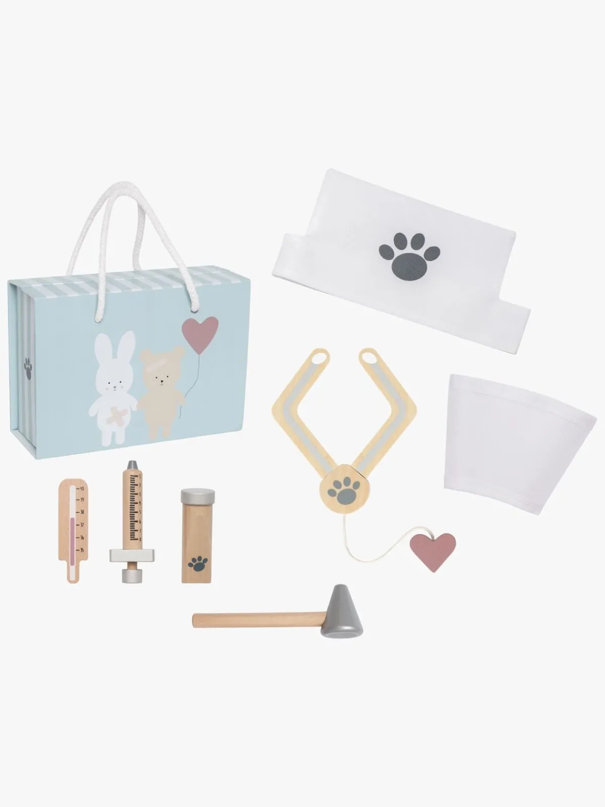 – Indeholder: 1 taske, 1 stetoskop, 1 halskrave, 1 kanyle, 1 reflekshammer, 1 termometer, 1 tube, 1 hat.