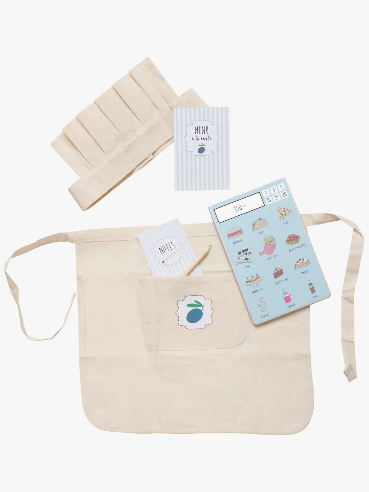 – Indeholder: 1 iPad, 1 menu, 1 tus, 1 forklæde, 1 notesbog, 1 hue.