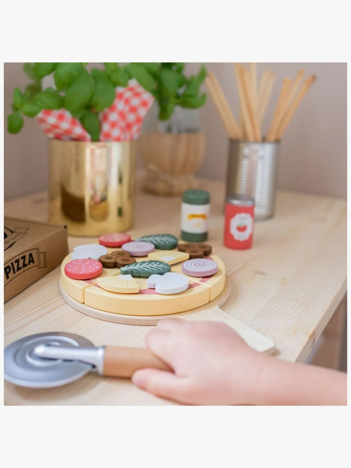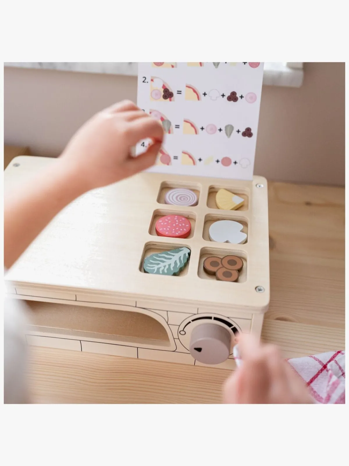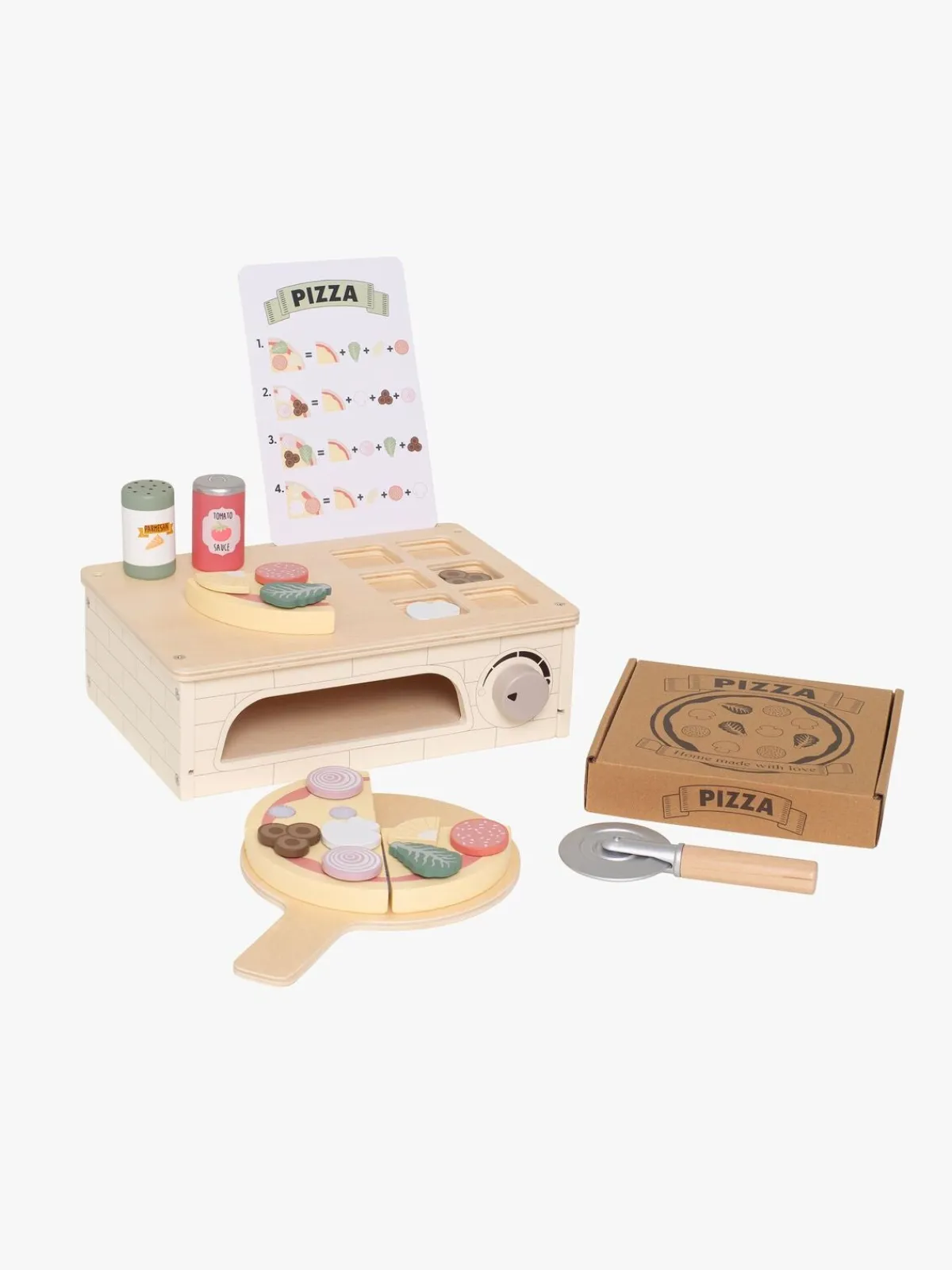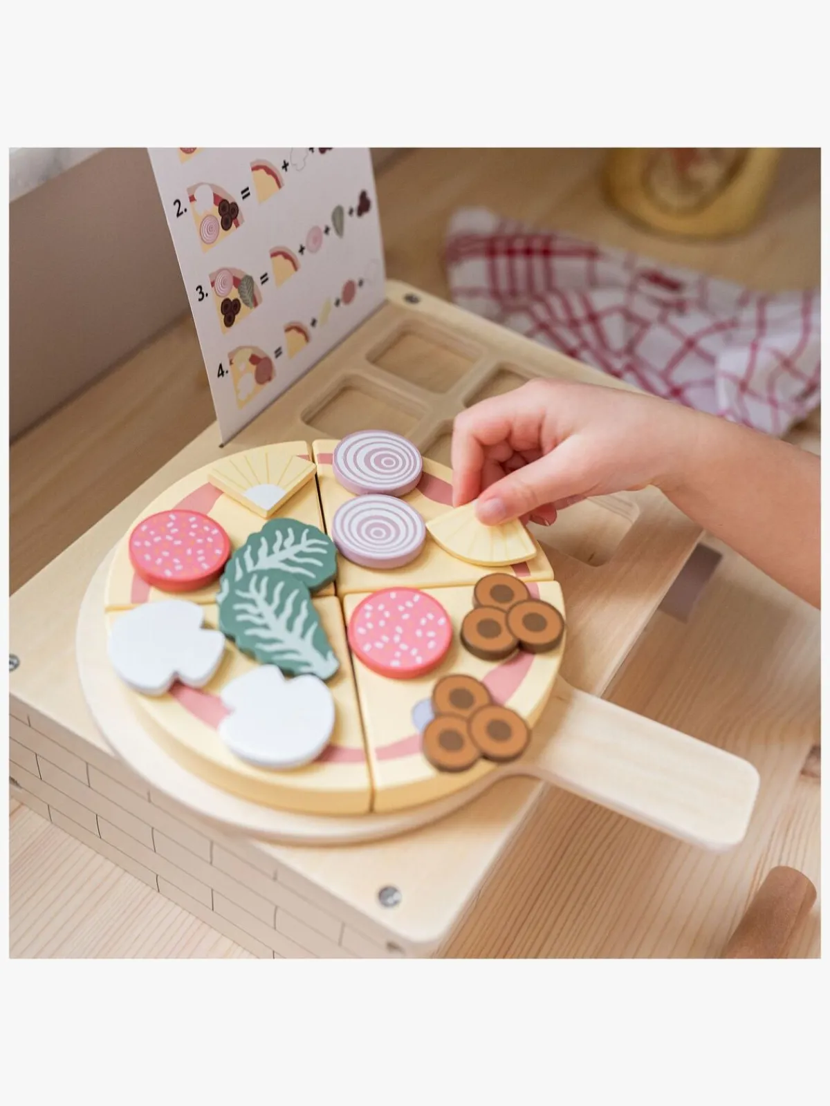 – Indeholder: 2 stykker pepperoni, 2 svampe, 2 ananasser, 2 løg, 2 salatblade, 2 olivener, 4 stykker pizza, 1 pizzaovn, 1 pizzaæske, 1 pizzaskærer, 1 pizzaspade, 1 menu, 1 tomatsovs og ostetopping.
