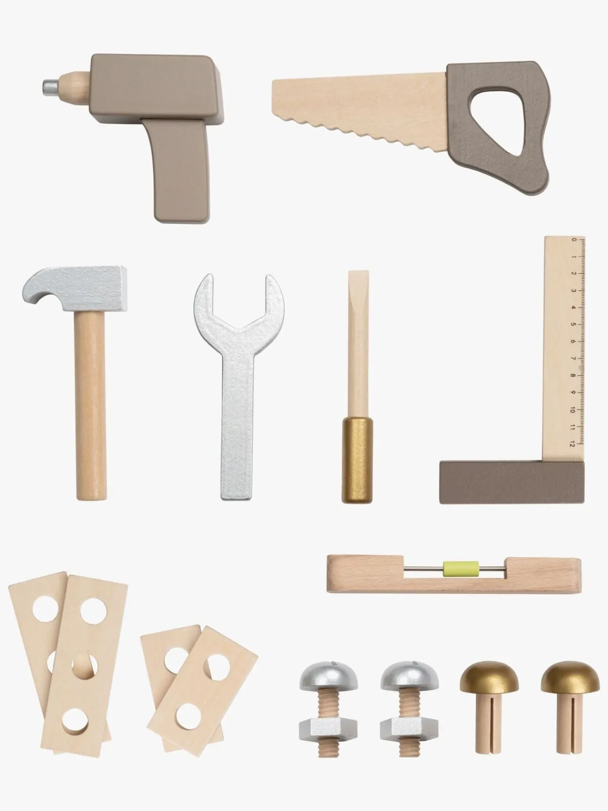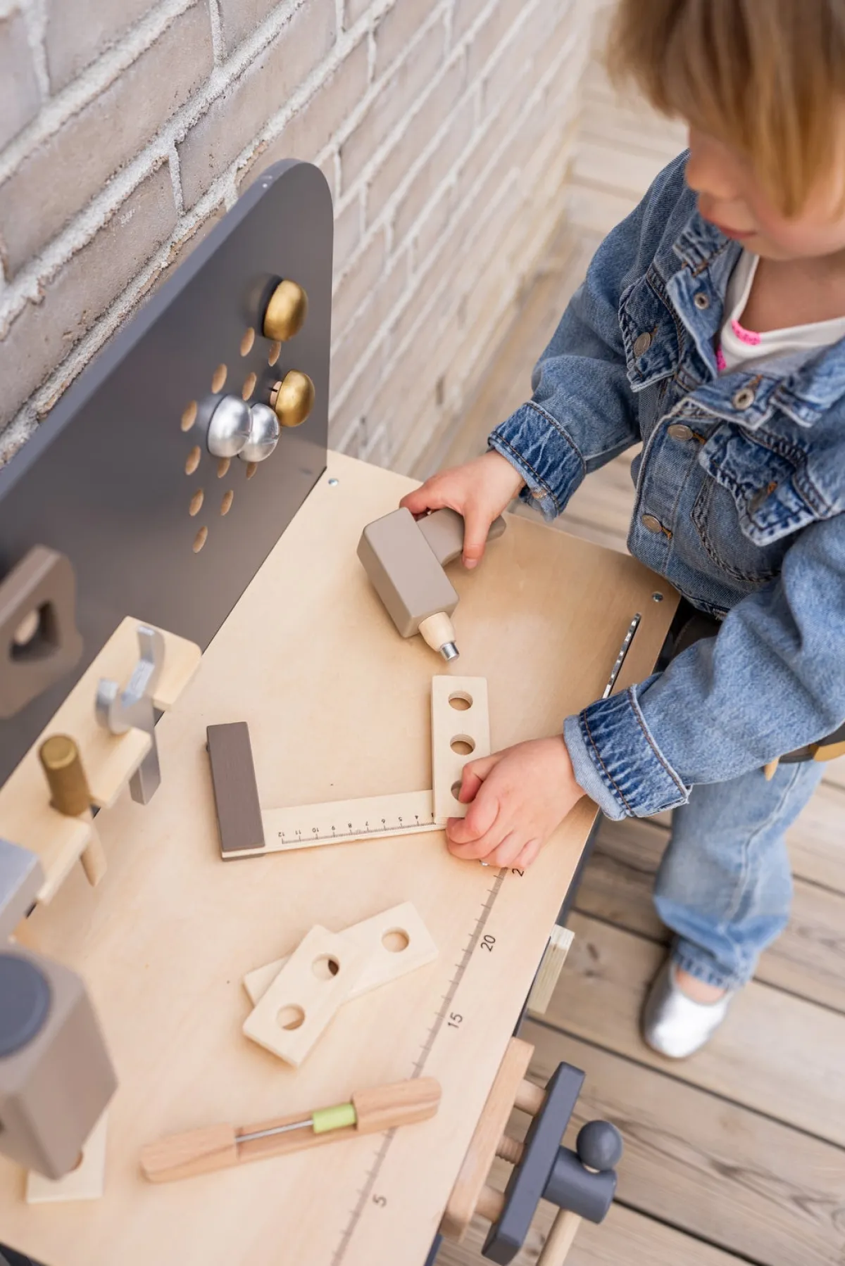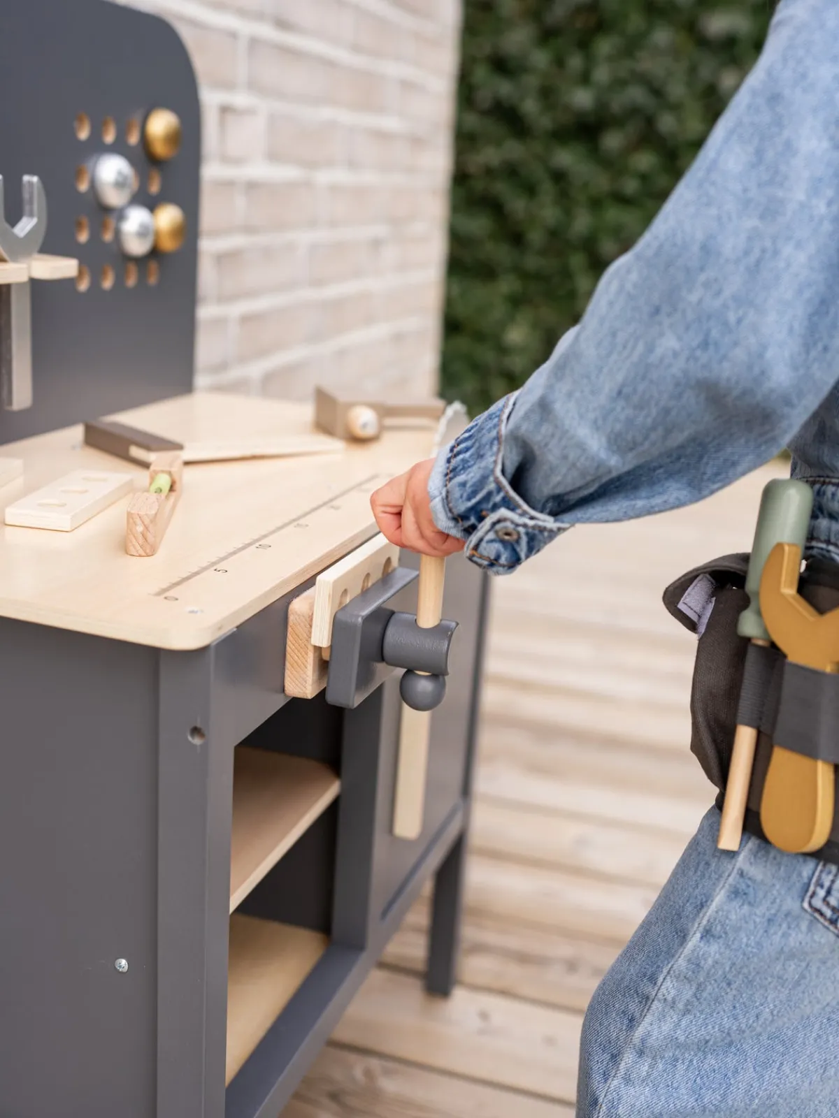 – Indeholder: 1 værktøjsbænk, 7 værktøjer, 4 brætter, 2 skruer, 2 bolte.