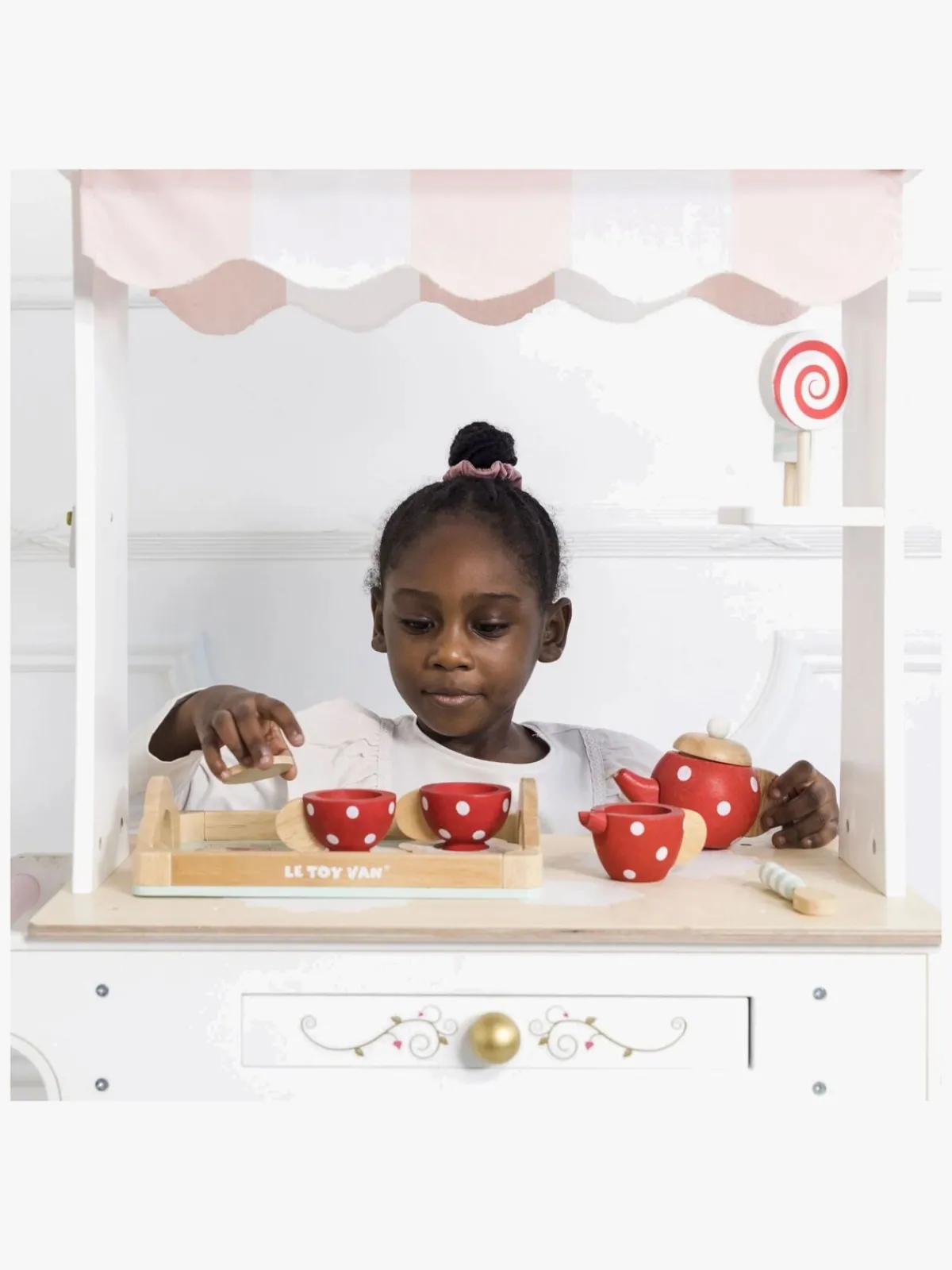 Vær den første til at anmelde “Rolleleg-LeToyVan Le Toy Van Te & Godter Markedsbod Lyserød/Hvid”