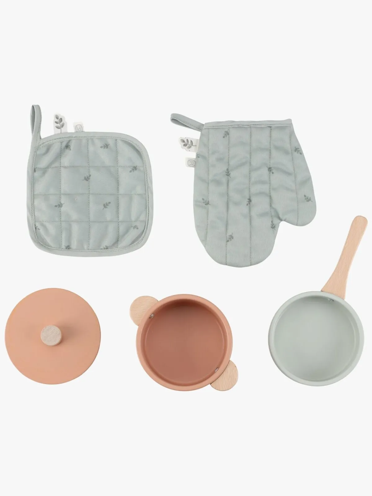 – Indeholder: 1 legekøkken, 1 grydelap, 1 grydevante, 1 stegepande, 1 gryde med et låg.