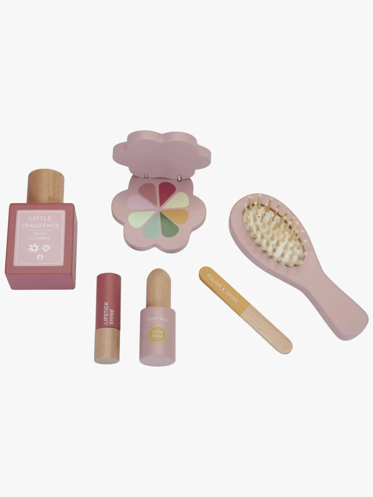 – Indeholder: hårbørste, parfume, læbestift, øjenskygge, neglefil og neglelak.